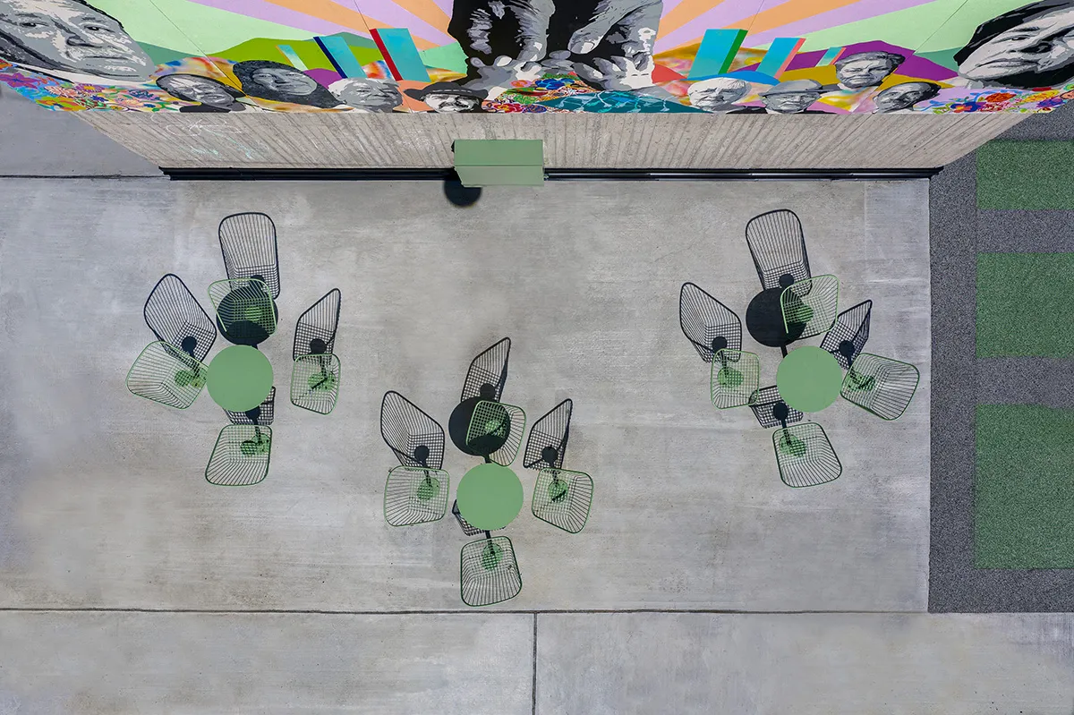 Nola has contributed to creating a safer outdoor environment in the form of an urban park in the suburb of Fittja in Sweden. In collaboration with Botkyrkabyggen and architect Arkitema, a former car park has been refurbished and transformed into a social and safe meeting place for residents in Fittja. The environment features Nola’s Långbordet, in collaboration with White Architects, and the Korg furniture group, designed by Thomas Bernstrand. The site in Fittja demonstrates a successful collaboration of several contributors.