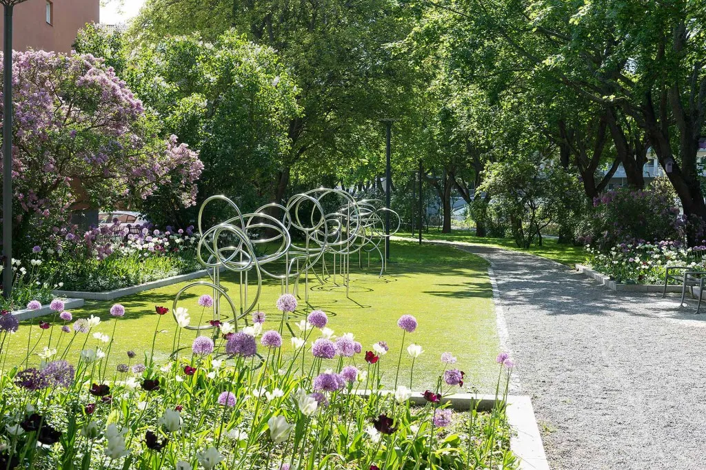 Parken innehåller det lilla i det stora, är småskalig i sina väl genomarbetade detaljer och samtidigt gestaltad som en karaktärsfull helhet med egen identitet. Varje plats har sitt unika blickfång, sin pärla. Det kan vara porlande vatten, en våt sten, en kanin i brons eller ett fågelbad.