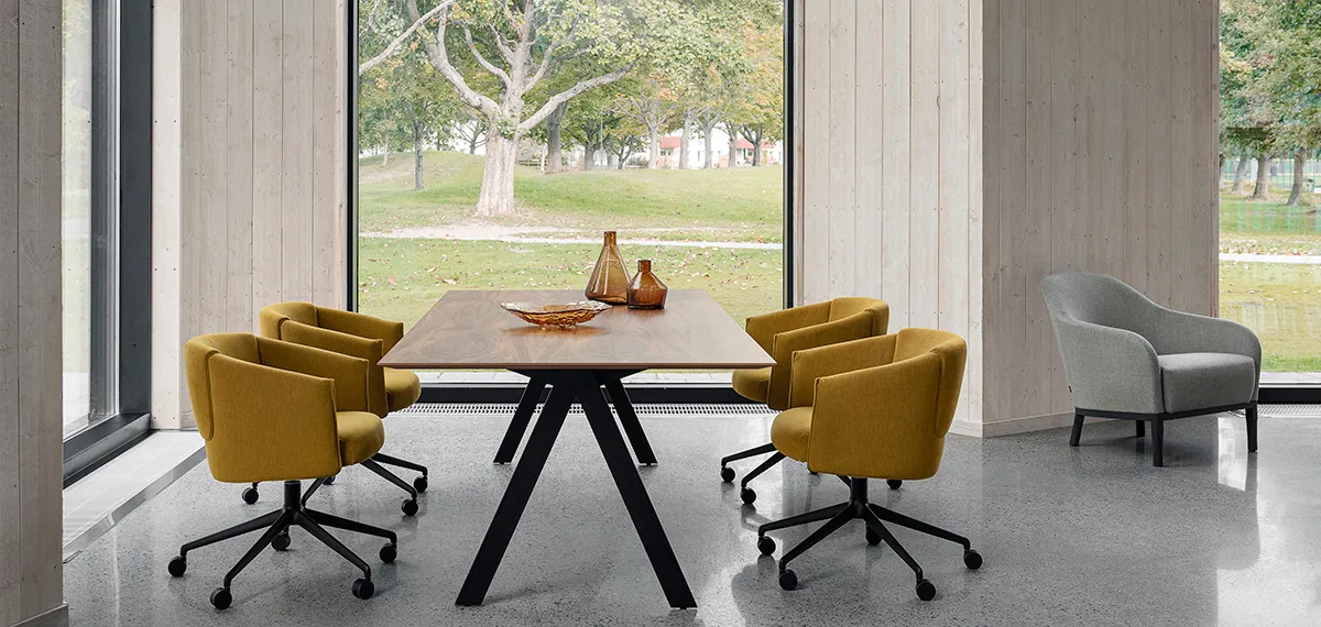 A mix of overlapping fabrics creates the same character and contrasts as when a chair or sofa is complemented with a loose throw or other textiles. Now the series has been extended with NORMA conference chair, which combines an air of exclusivity with the ultimate in seating comfort.