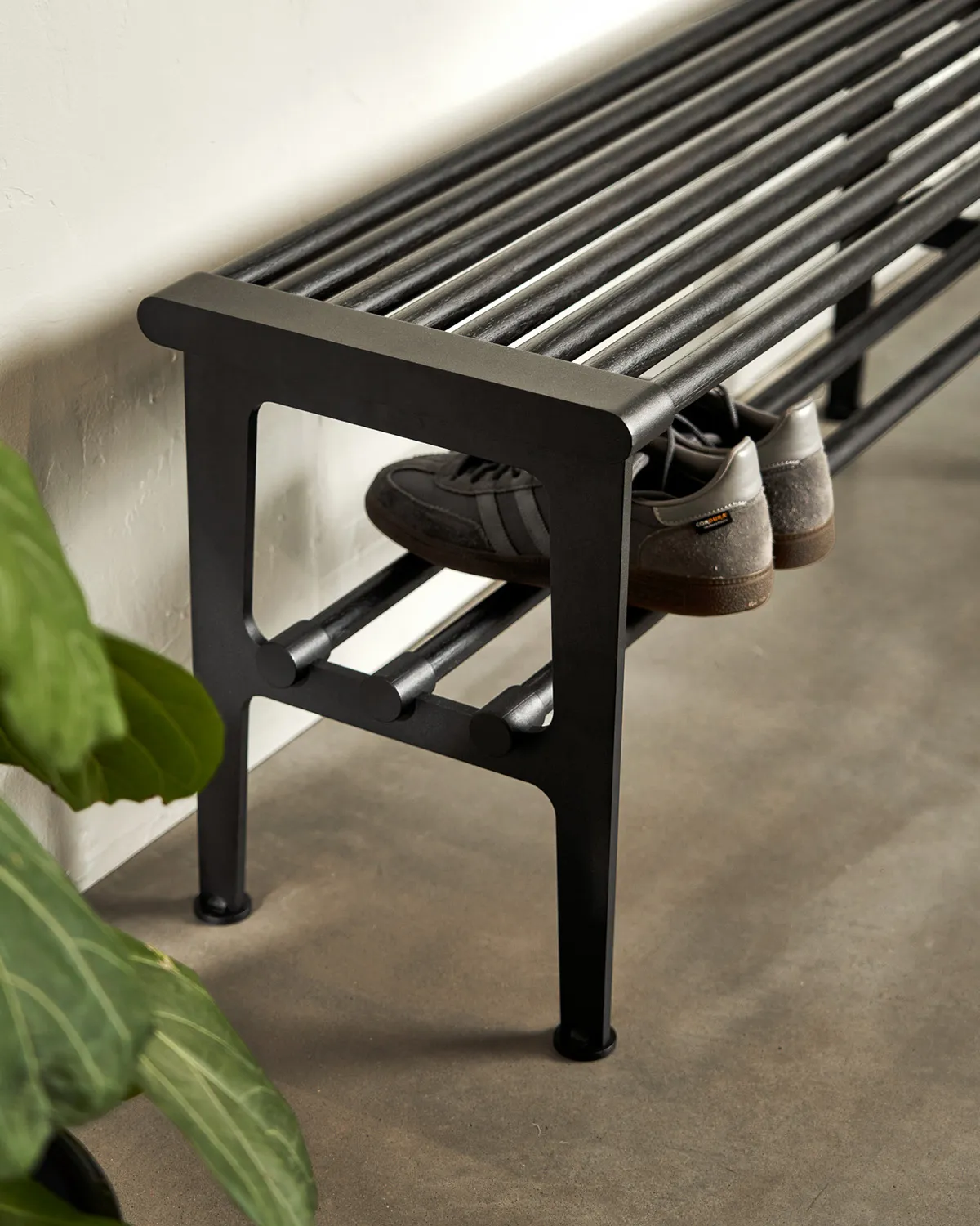 Even so, the bench seems obvious as an addition to the product family. Inspired by the hat and shoe rack, Roger Persson has designed a flexible and sturdy product that extends indefinitely with the help of middle brackets.