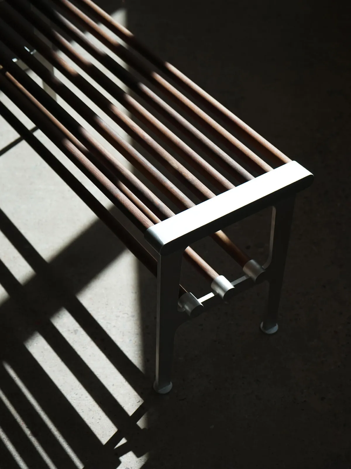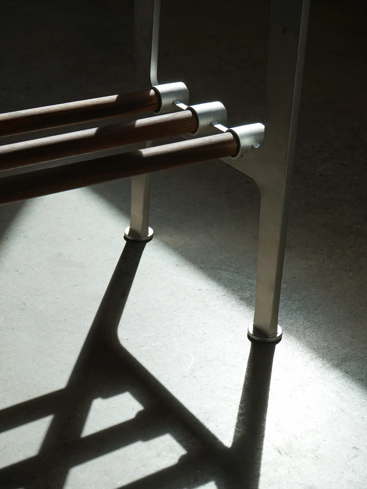 But it can also function as a free-standing shoe rack, a seat to tie your shoes on at the entrance, or even a combination of the two. As with the other Nostalgi products, the brackets are made of recycled aluminium, joined by metal or wooden bars.