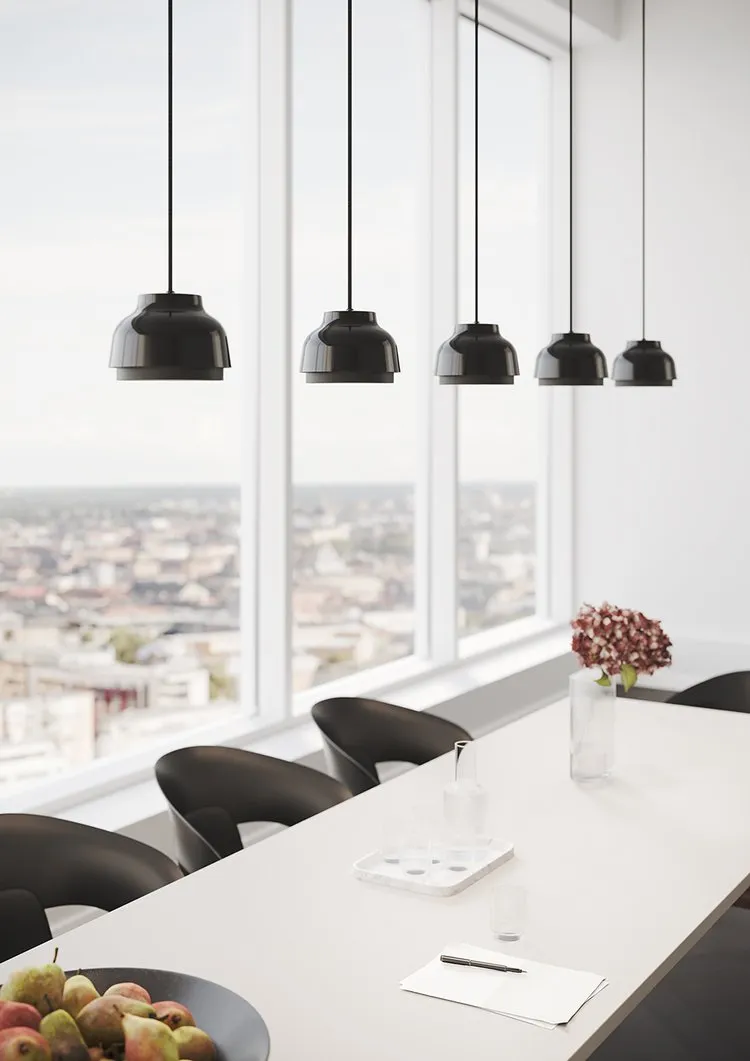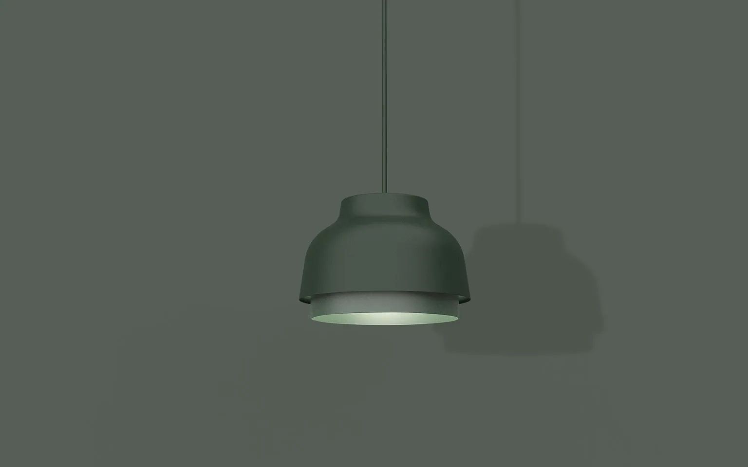 Now it’s the world premiere for a light, a new pendant luminaire that doesn’t dazzle. It’s been named A LIGHT. A pendant with an infinite variable where the outer and inner shades can be varied or where both shades can be painted in the same color.