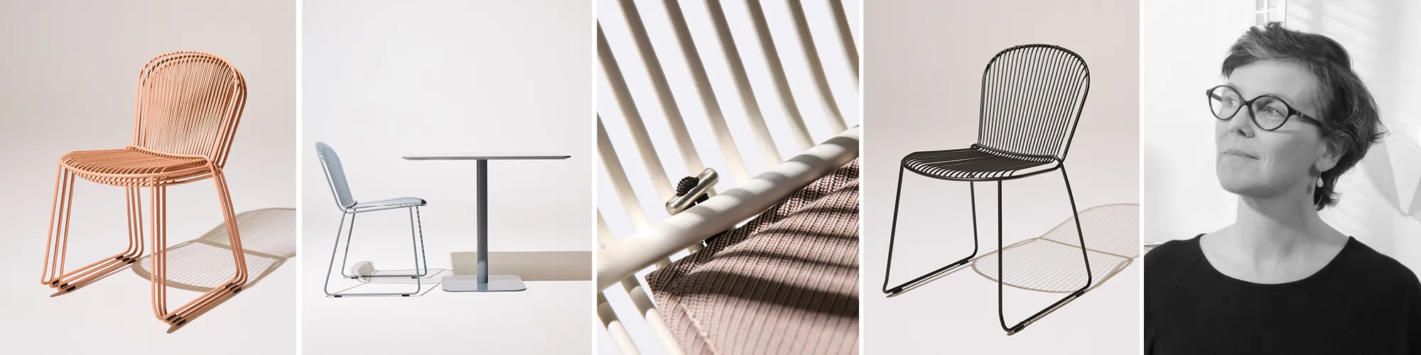 In developing an anniversary chair, we initiated a new design collaboration with French designer Constance Guisset. Constance founded her studio in 2009 and is known for her work in product design, interior design, and scenography, with collaborations including Dior, Zanotta, and Louis Vuitton Malletier. Her most famous design is the Vertigo pendant lamp. Her unique style, which balances ergonomics, elegance, and imagination, has been invaluable in creating the O Chair. This chair utilizes all the possibilities of metal wire to produce