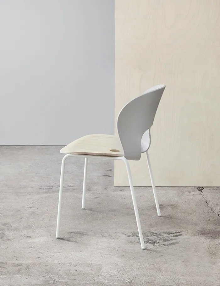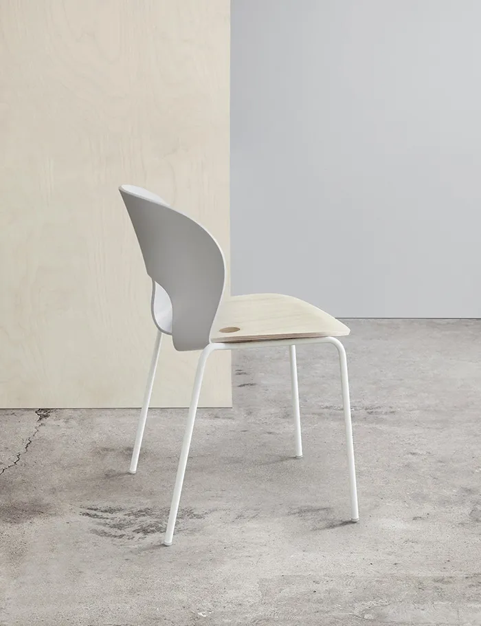 A new series of chairs in modular design – with focus on using as few elements as much and for as long as possible – in exciting combinations. A chair that is easy to disassemble, so the parts can be recycled and reused for the benefit of the customer and the environment. The chair is created under the aspect of unique design, longevity and minimal transport costs due to the chairs stacking ability. The design is based on circular economy: all elements of the chair can be returned to Magnus Olesen and upgraded. The chair consists of three parts – seat, back and frame – elegantly combined with just one screw. The Ø-Chair is a sustainable chair that offers endless combination options, even when replacing individual parts over time.