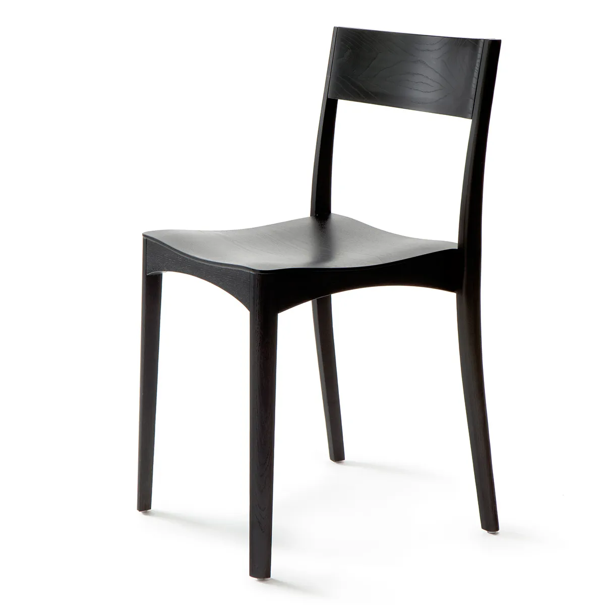 October Light is a skillfully designed, extremely lightweight wooden chair with meticulously done joinery that follows the traditions of Nordic cabinetmaking. This graceful chair is adorned with wood grain patterns of ash and finished either with clear lacquer or black stain. The seat is available with or without upholstery.
