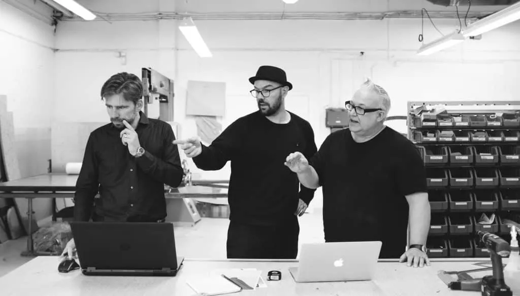 From left: Joachim Schubert, Product development, Luca Nichetto and Anders Englund, Offecct Design Manager.