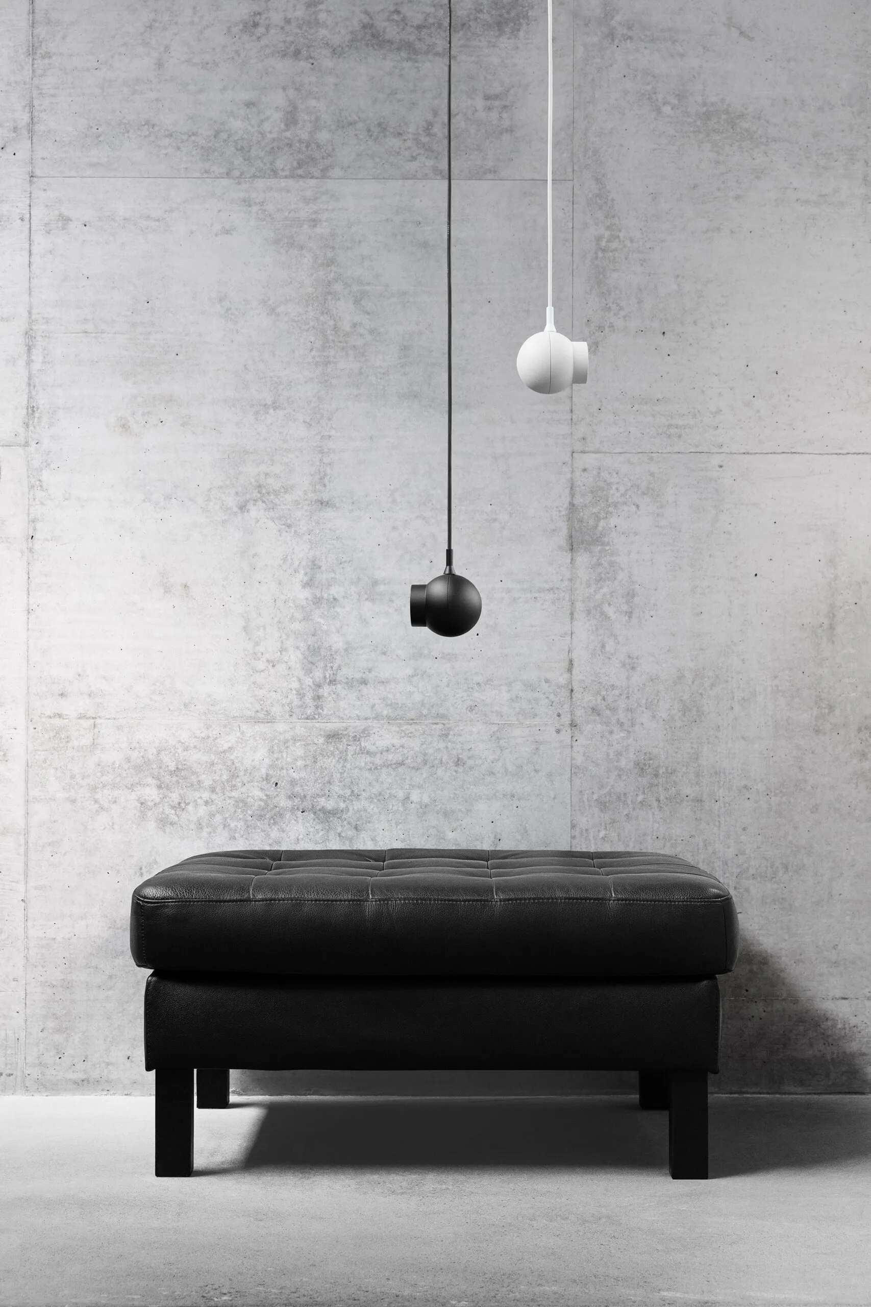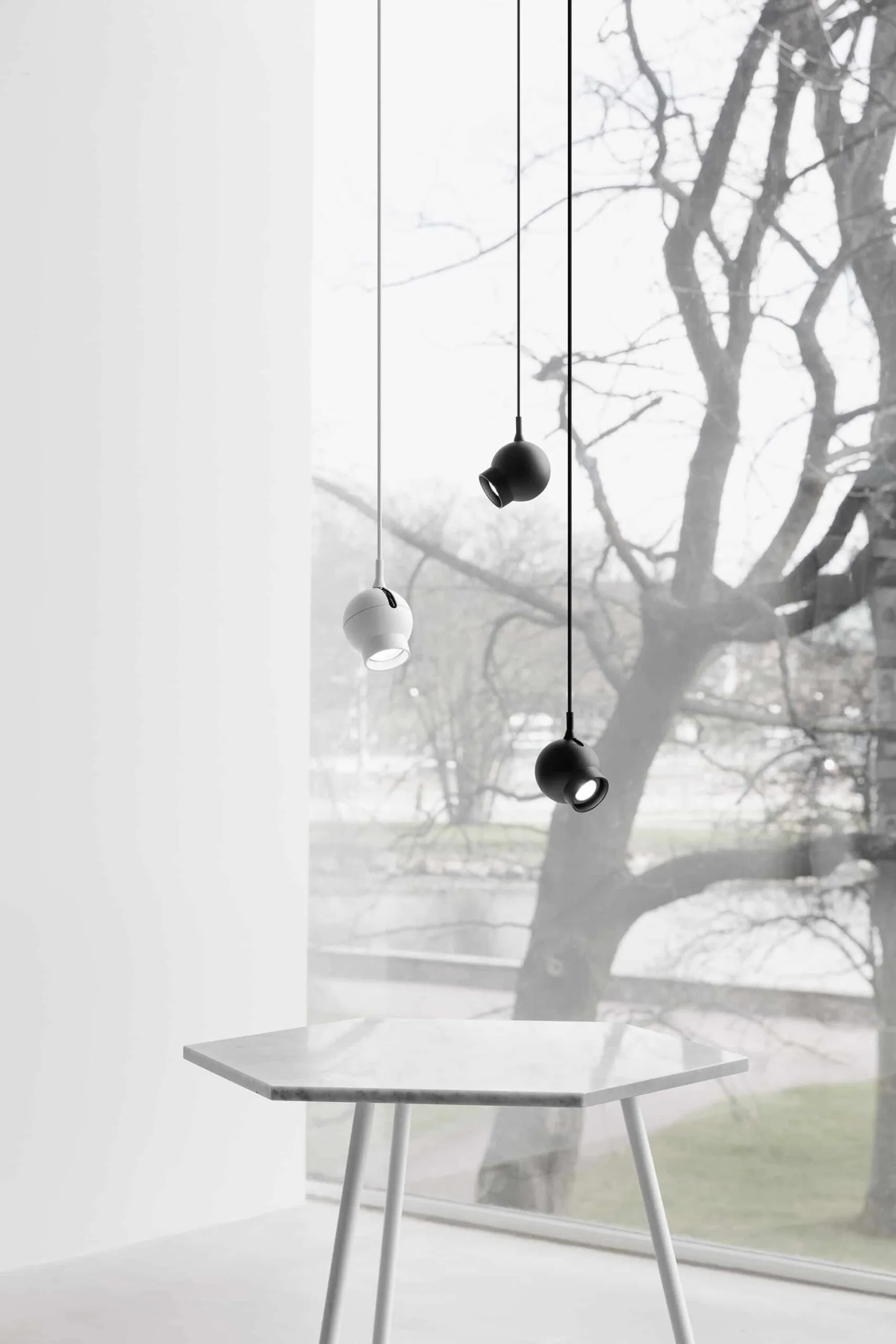 A minimal pendant with a spotlight function, effectively a sphere and pipe, initially made for a hotel in Stockholm.