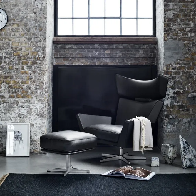 It took Arne Jacobsen nothing less than five years to develop the Oksen™ design. In contrast to many of his earlier pieces that are characterised by rounded, organic shapes, this easy chair has a much sharper outline.