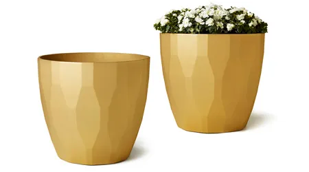 This stylish planter in recycled aluminium is made to complement contemporary architecture and landscaped gardens. The surface is characterised by angled geometric shapes that resemble the intricate profiles found in ornamental tile works. The planter’s substantial size is big enough to grow shrubs and small trees, making it possible to bring plant life to areas covered in concrete. Placing a pair of planters beside a building’s entrance makes it more welcoming, while a row of them lining a building’s façade enhances its appearance. Made from sand-cast aluminium, the planter is lightweight and easy to position in place.