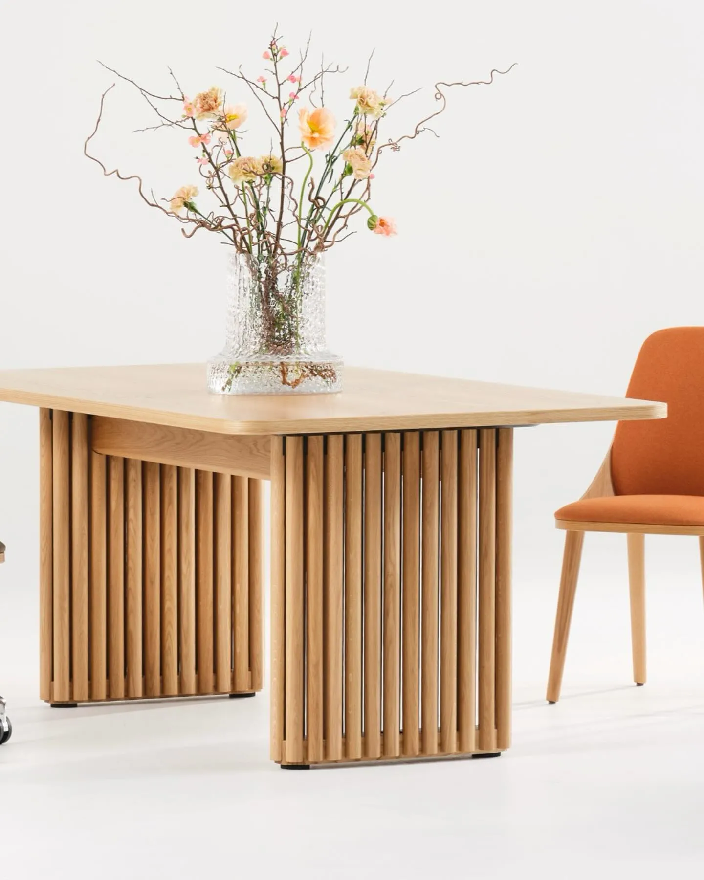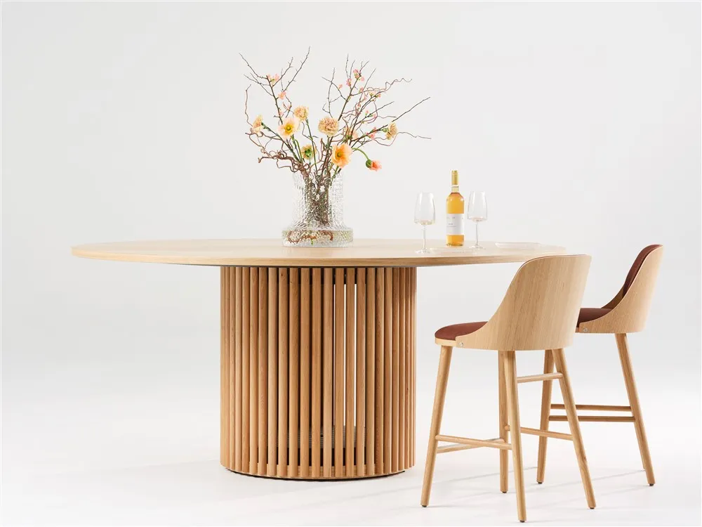 Opera is a solid, handcrafted table system with a sculptural expression and full functionality. Inspired by a stylized pilaster, a play between light, shadow and transparency is created. The base with its airiness and at the same time stability, creates a beautiful and exciting unit. Opera has a wide range of uses in rooms that need a table where people want to gather around; to confer, chat, have a meal or just hang out.