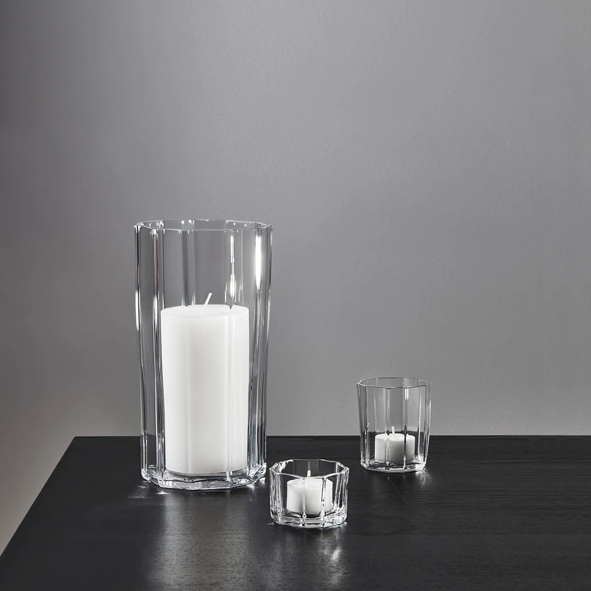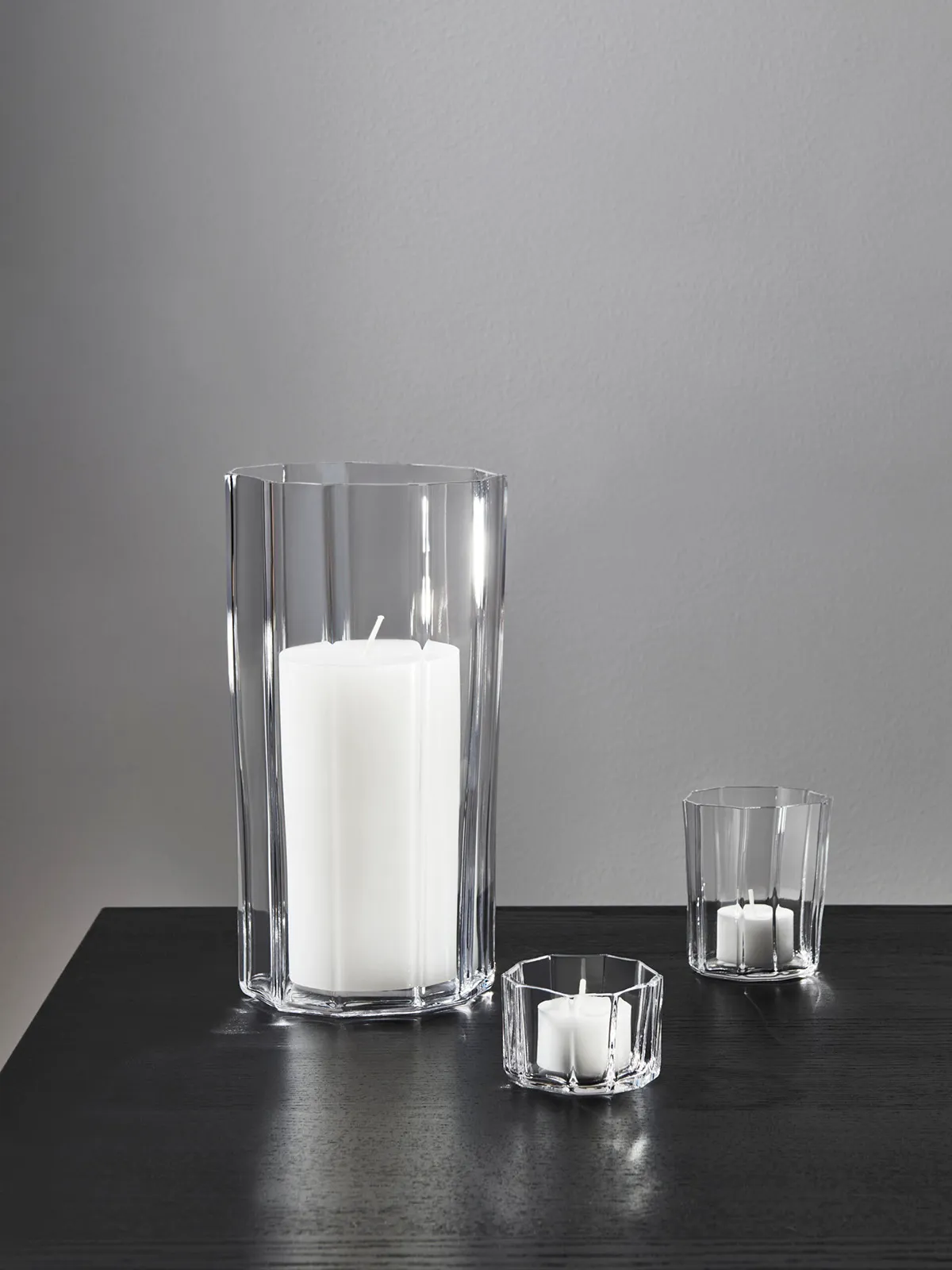 In Reed, Monica Förster elevates the seams of form, crafting a sense of organic movement. A gentle swaying captured in unyielding glass. The award-winning vases now find kinship in two tealight holders and a storm lantern.