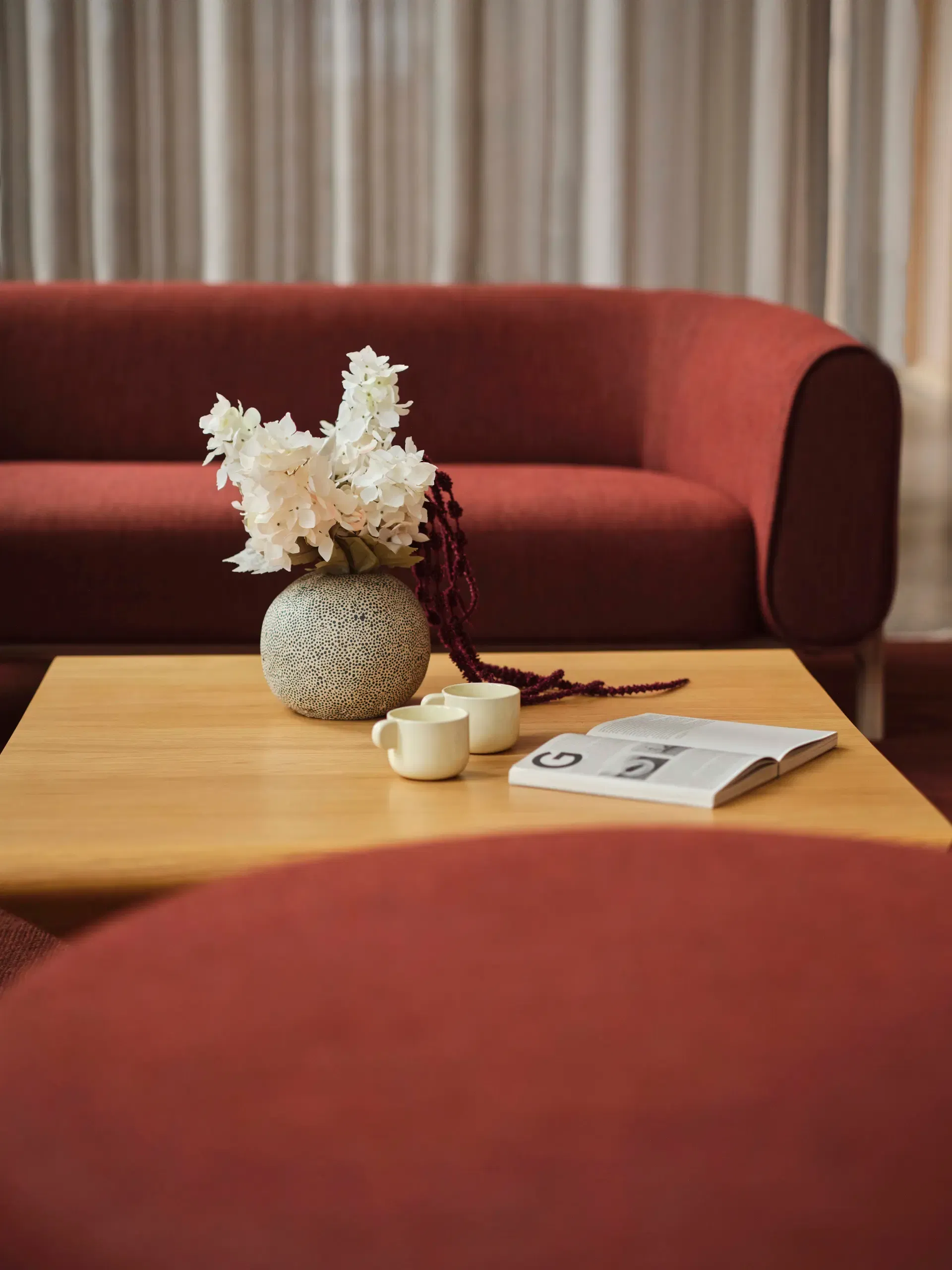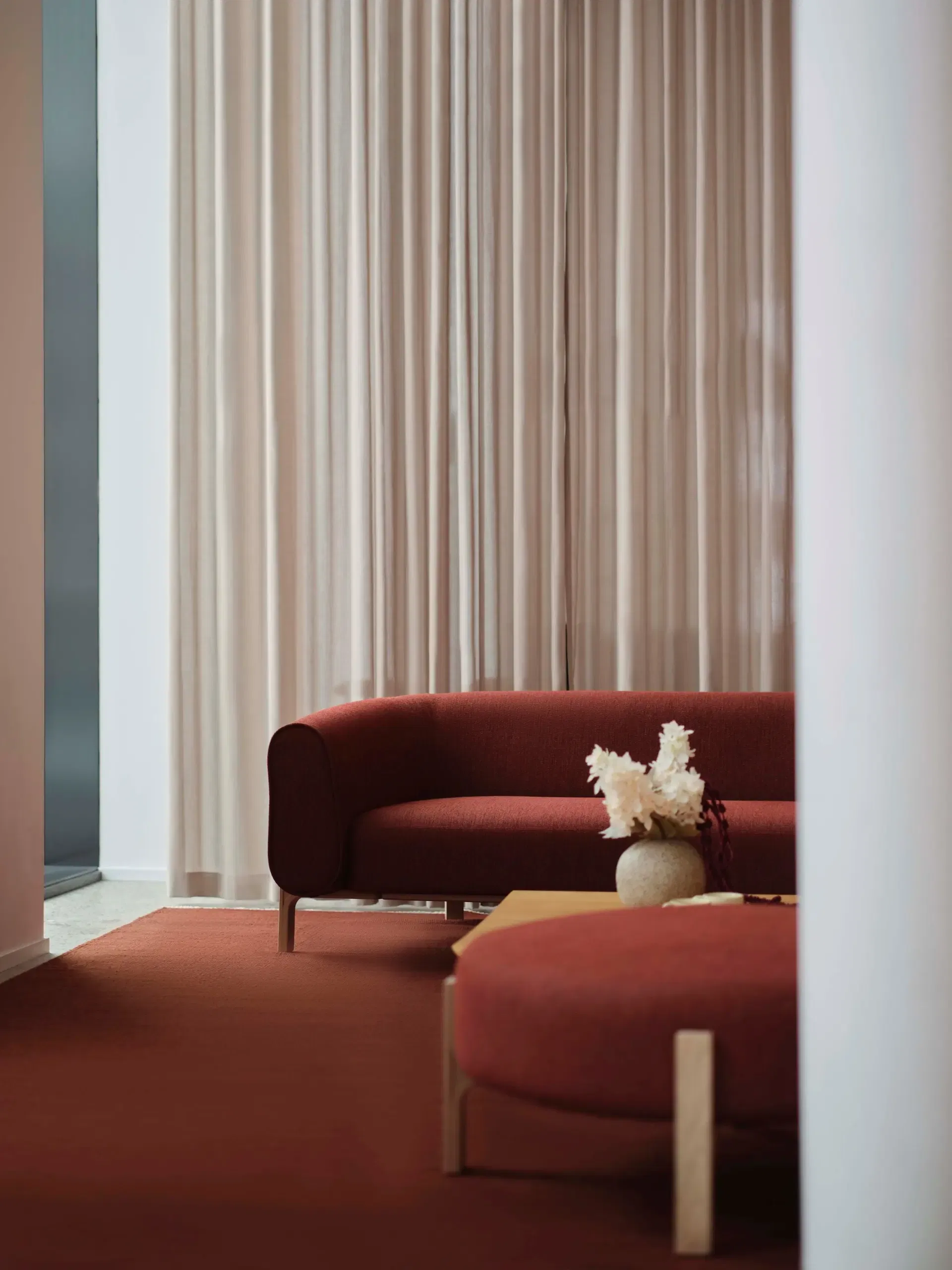 Origin is a furniture series with soft, rounded forms. The sofa may look light and petite, but when you lean back it opens up generously, enveloping the body in comfort.