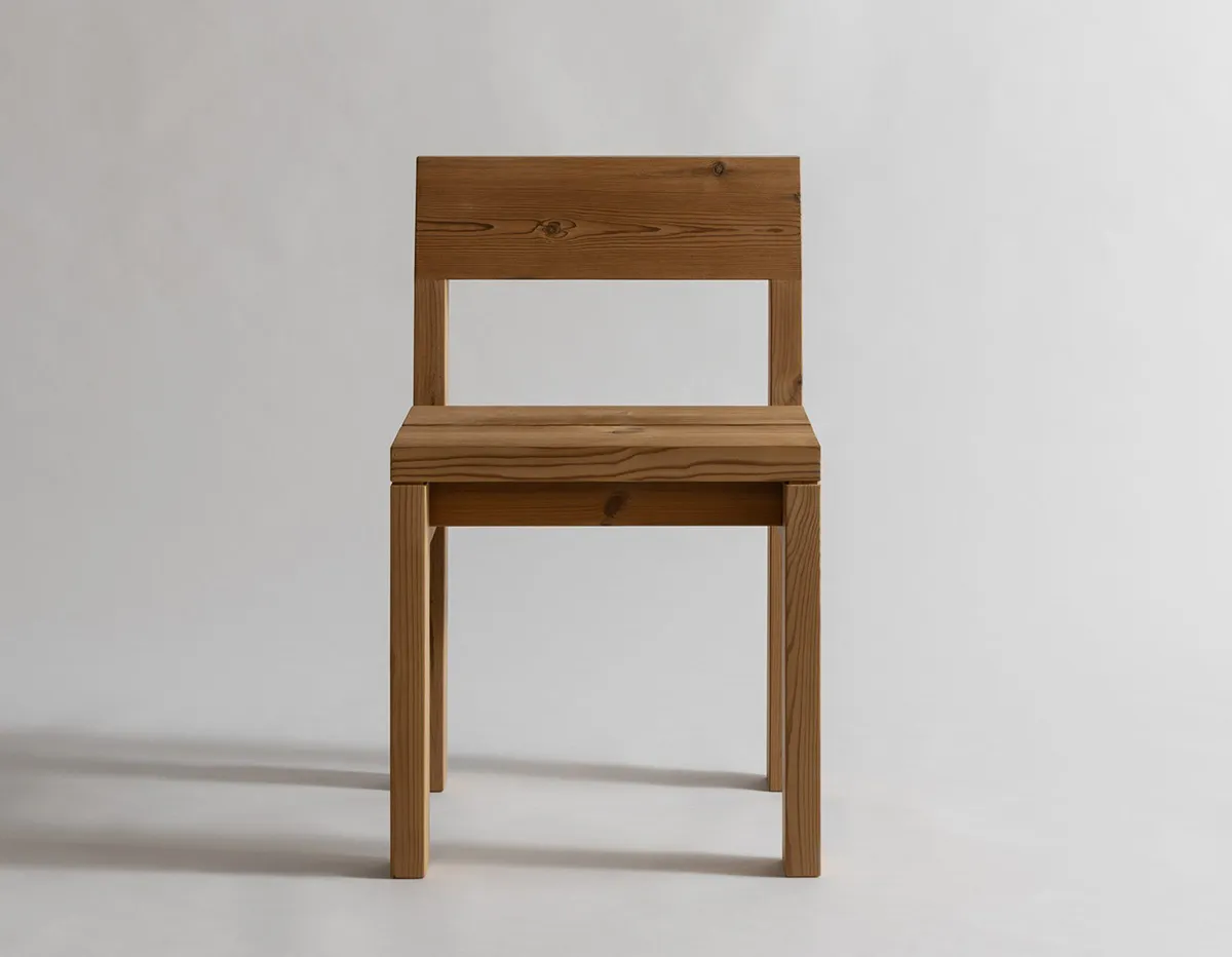 001 Stool in solid pine designed by Fredrik Paulsen for Vaarnii showing full perspective of essential form