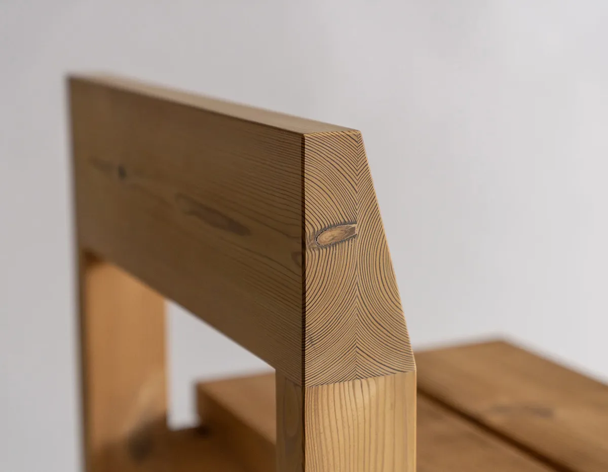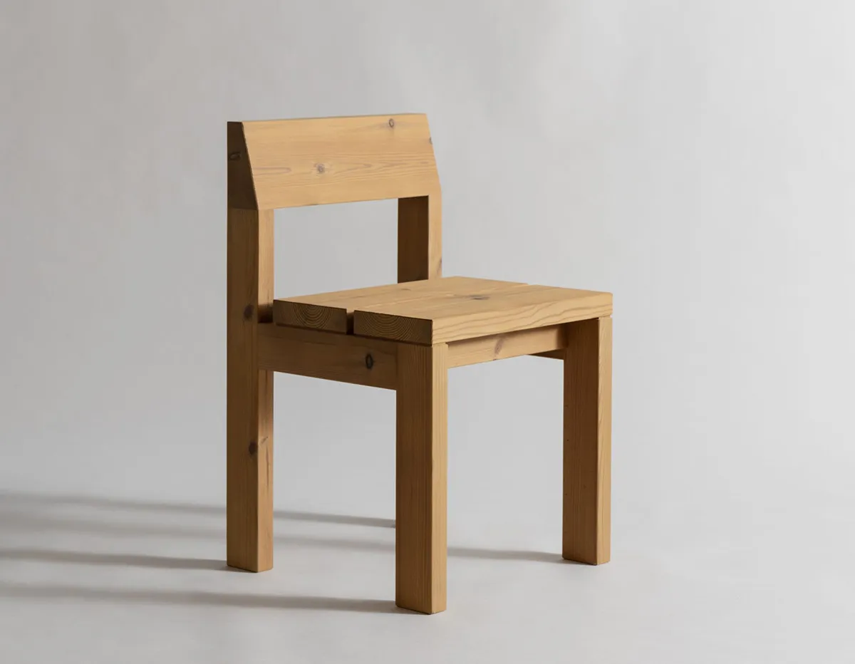 Brutalist lounge chair by Max Lamb for Vaarnii featuring sophisticated craftsmanship with raw pine material and angular forms