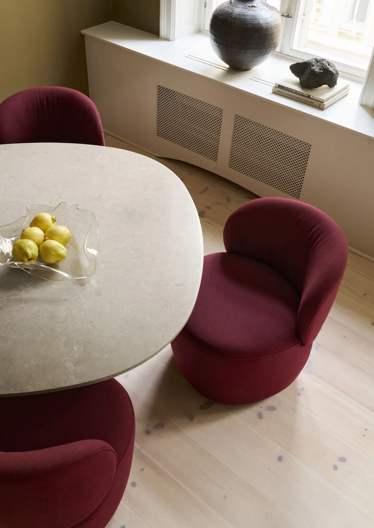 Fully upholstered and softly sculptural, the Ovata Compact Chair balances expressive form with versatile function. Its compact proportions make it equally suited for hotel rooms, restaurants, and lounge areas, as well as a refined accent in the home. As part of the broader Ovata collection – spanning lounge chairs, dining tables, and dining chairs – the new compact version continues Note Design Studio’s exploration of organic curves and welcoming silhouettes.