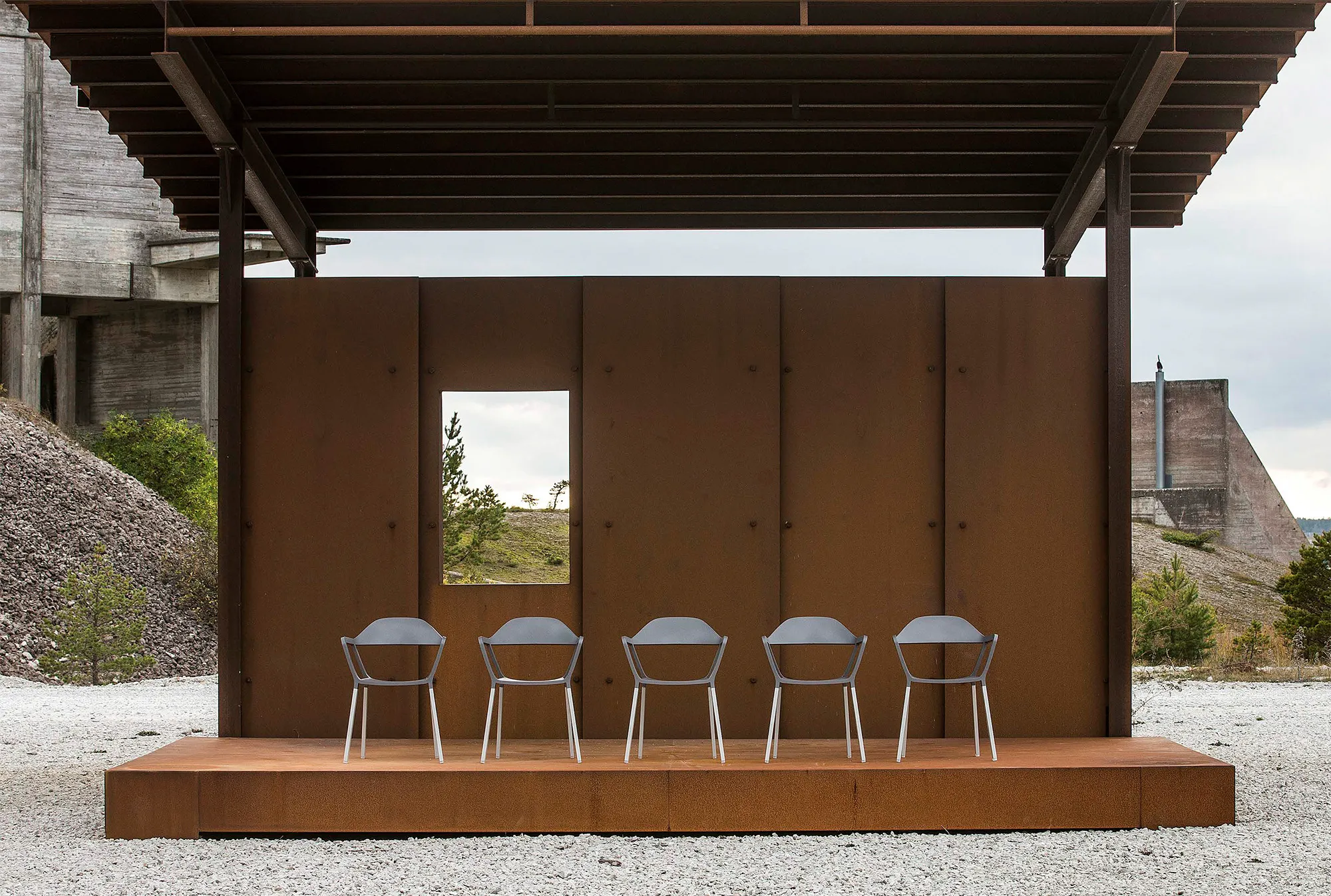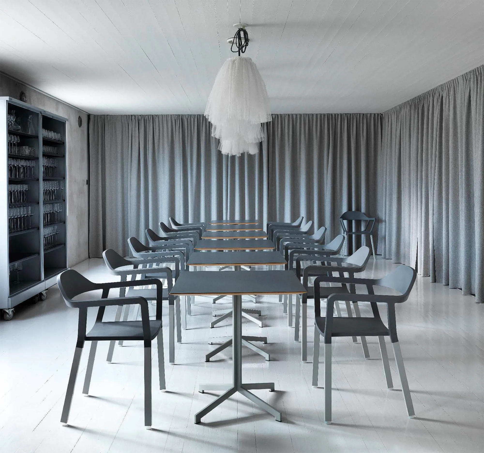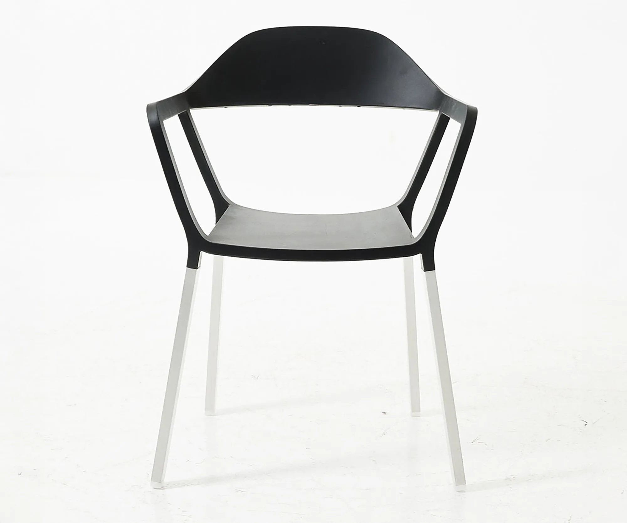 A unique chair with generous pro-portions and superb comfort that at the sametime is light, tough and stackable. The legs are in aluminium while the shell is injection moulded from different plastic materials in two separate stages. Completely recyclable without needing to separate the two layers.