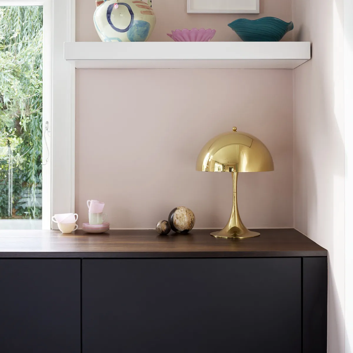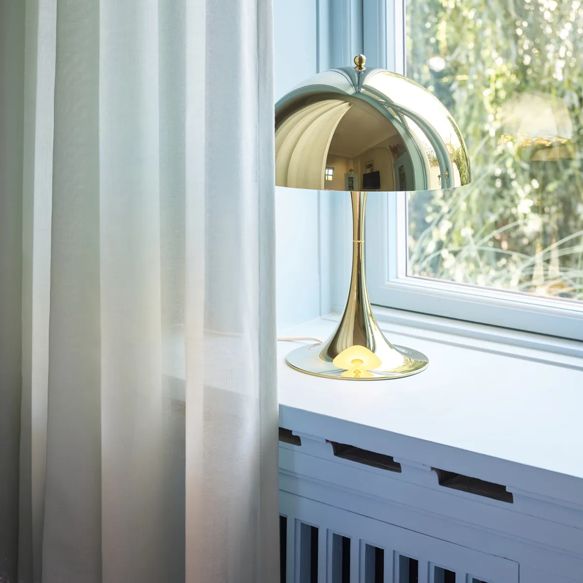 As a tribute to Panthella and its fiftieth anniversary, Louis Poulsen is introducing a new medium-sized Panthella Table lamp. The Panthella Mini and Panthella Table 320 lamp will come in a new distinctive brass metallised finish.
