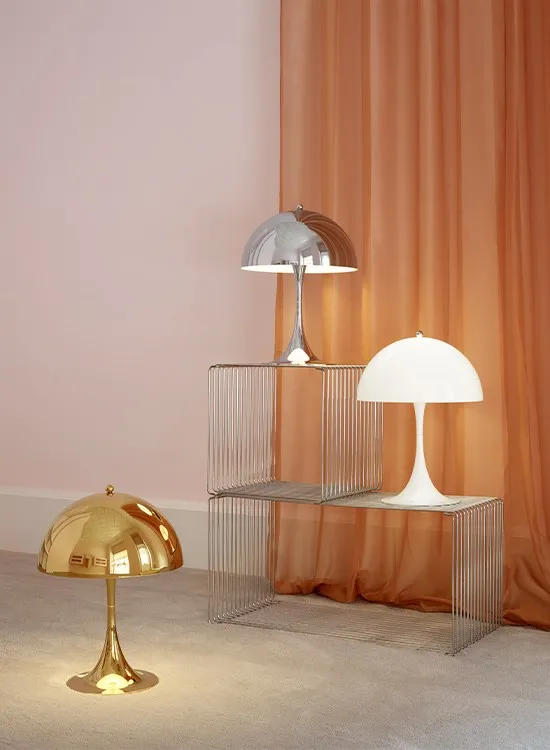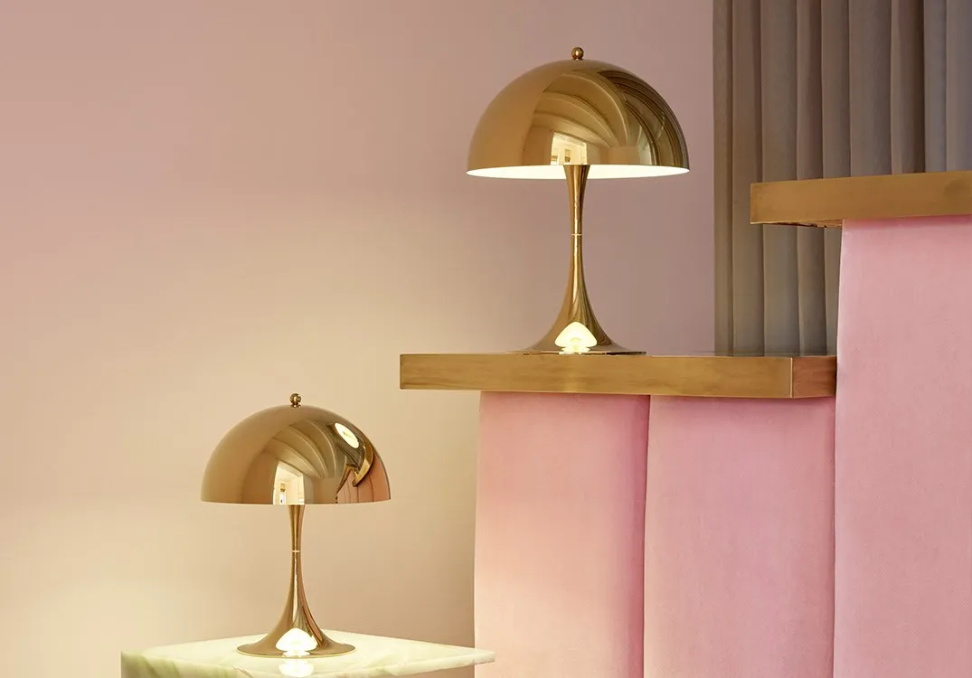 As a tribute to Panthella and its fiftieth anniversary, Louis Poulsen is introducing a new medium-sized Panthella Table lamp. The Panthella Mini and Panthella Table 320 lamp will come in a new distinctive brass metallised finish.