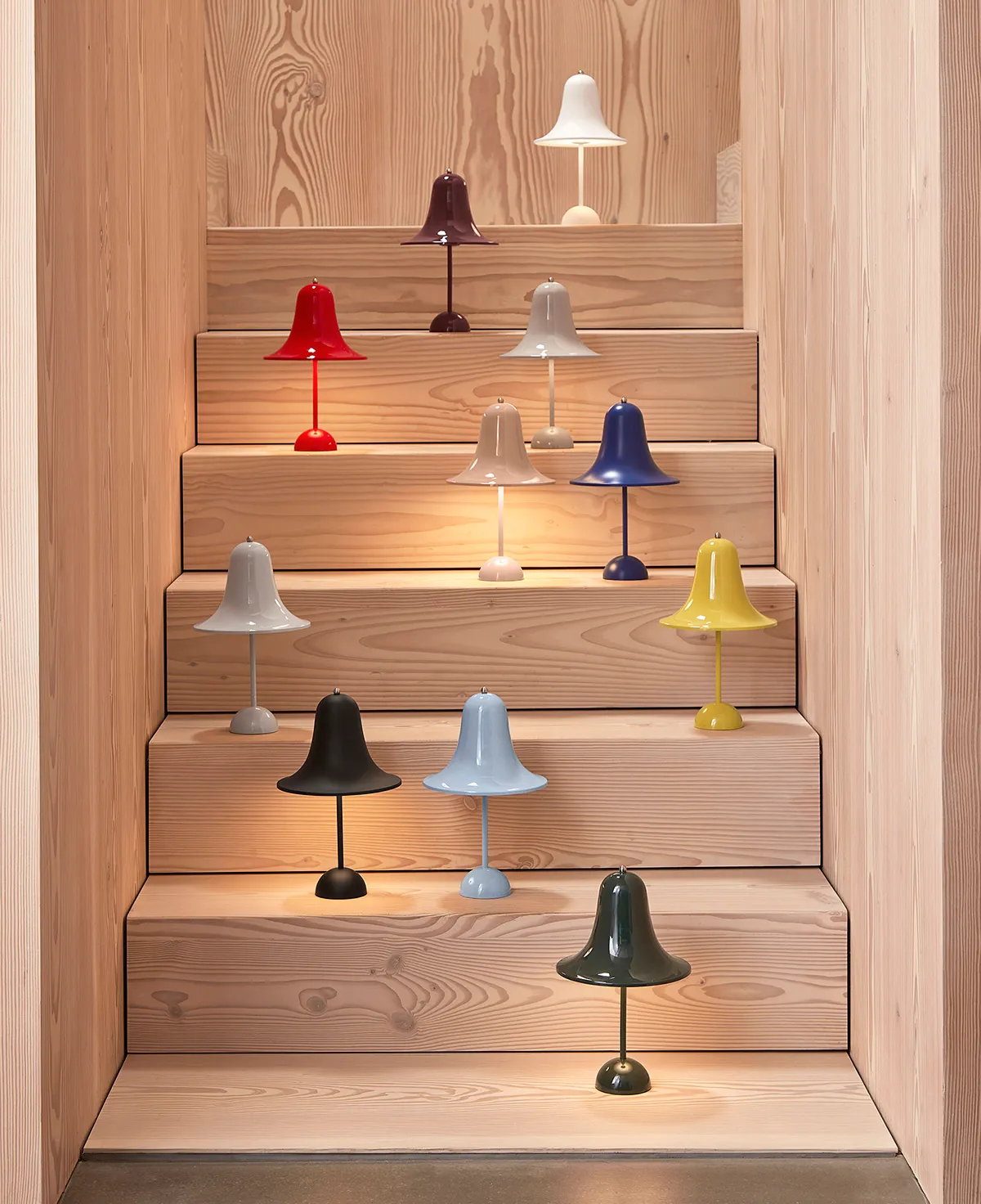 One of Verner Panton’s greatest beliefs was getting people to use their imagination and dare to use colours in their interior settings. Keeping with this philosophy, the Pantop Portable is introduced in a range of 11 bold colours ranging from a daring bright red and popping yellow, to dark green and grey shades. The new colour palette gives room for endless possibilities, and the mobility feature allows you to easily bring colour to more settings. Pantop Portable is available in Dusty Rose, Light Blue, Dark Green, Warm Yellow, Classic Blue, Bright Red, Burgundy, Mint Grey, Grey Sand, Black and White.