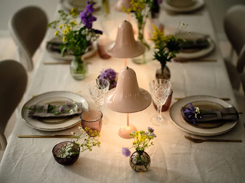 The elegant Pantop line was designed by Danish designer Verner Panton in 1980. This Autumn, Verpan presents the portable version which is a perfectly downsized addition to the current Pantop collection. Verner Panton designed many small table lamps during his time – the Pantop being one of the few designs that add a direct downward light and a functional dimension to the design.