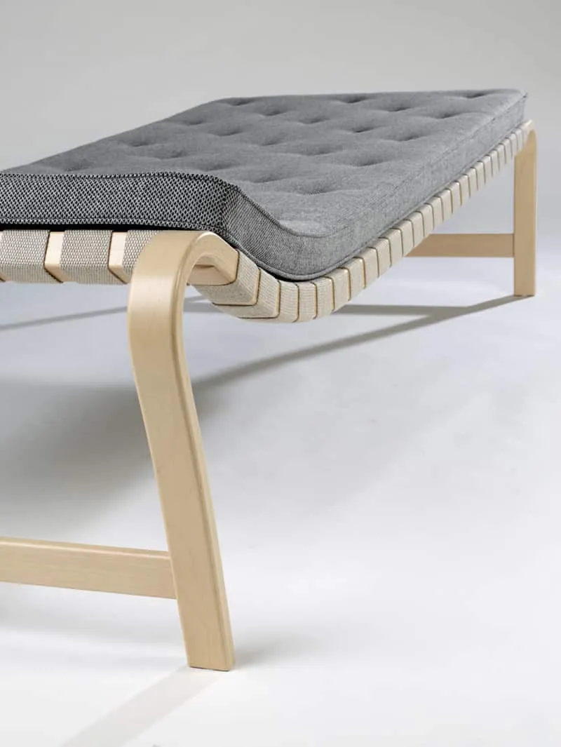 Bruno Mathsson Paris daybed featuring bent laminated beech frame with plaited webbing celebrating 80th anniversary