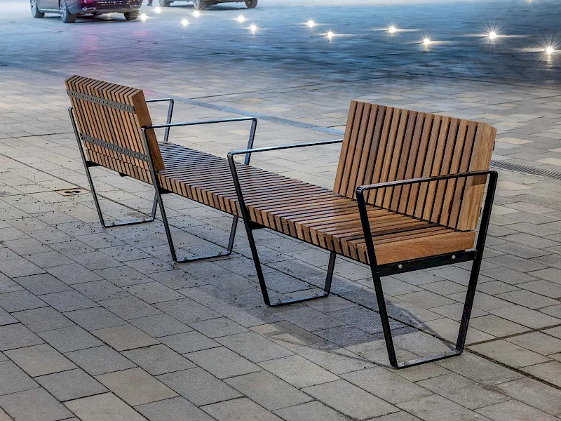 Despite its multifaceted use, the bench has a simplicity in its design, with the same pieces of wood for all parts and bench varieties, both for the seating area and backrest.
