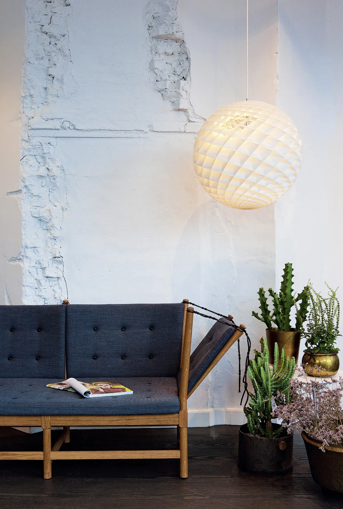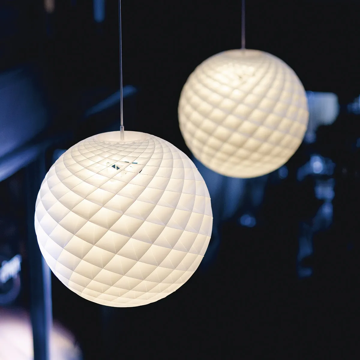 “Patera is intended to serve as a modern chandelier – a light that unifies the space and makes any room a more human place to spend time in.” The ball-shaped pendant floats like a majestic focal point in the room, spreading light in all directions. At first glance, it seems to be just a white, perforated ball, but closer inspection reveals its detailed design featuring a host of circles, angles and holes.
