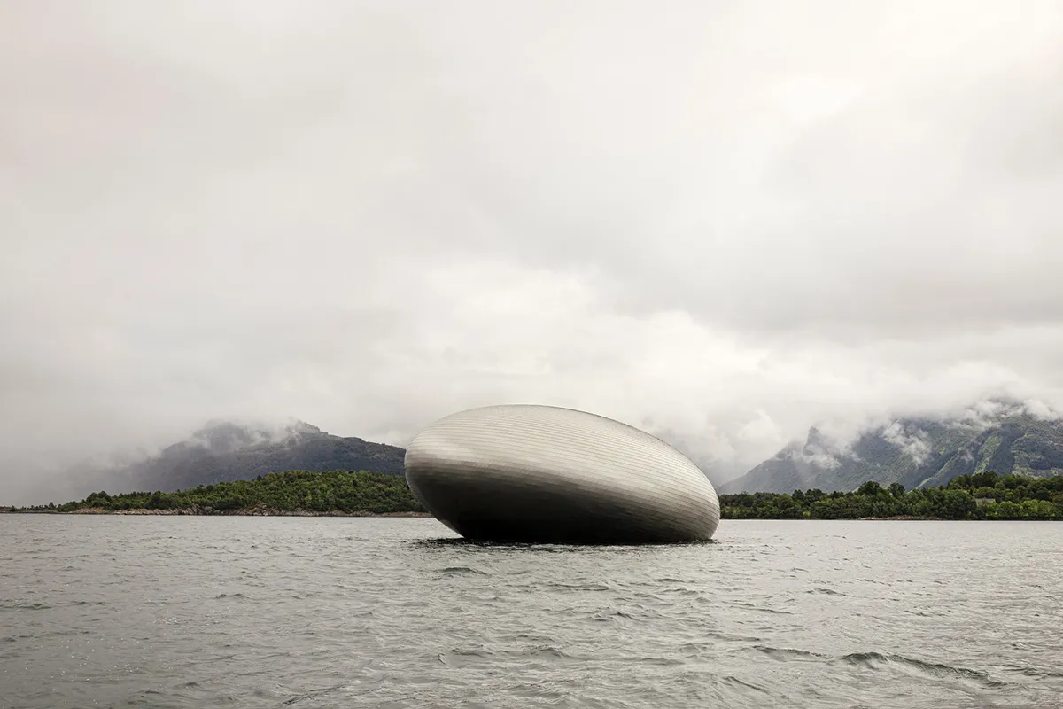 Nestled within the floating art installation Salmon Eye and framed by the majestic Hardangerfjord in Norway