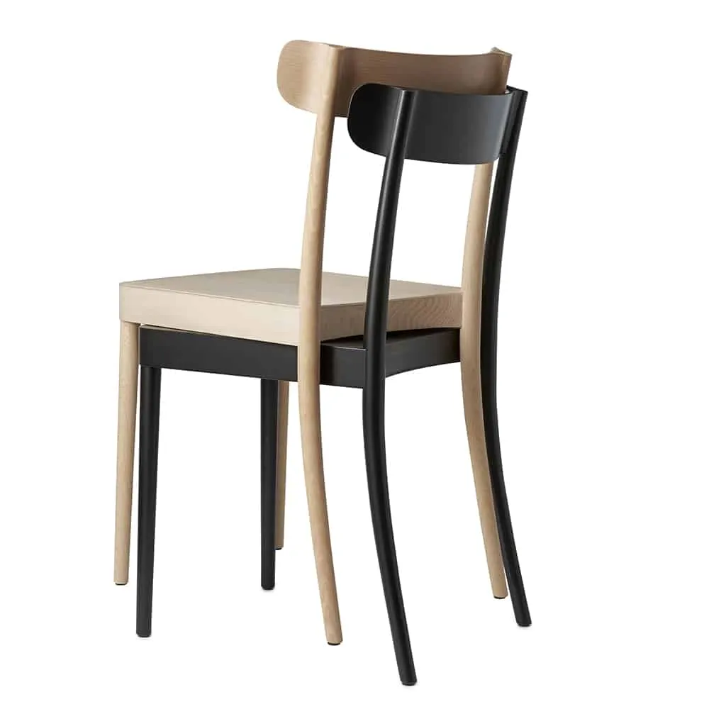 Petite by David Ericsson is a contemporary Scandinavian counterpart to the classical café chairs found in European cafés. A minimalist construction in beech makes it as practical as it is elegant. A focus on details, such as the crafted joints in the back and front legs, gives the chair its unique character. The seat is slightly conical to be neater and the moulded back slat is higher to avoid further support. The simple design makes it just as suitable in the home at the kitchen table as in a relaxed café or restaurant. And since it is both stackable and minimal in design, it requires little space, regardless if it is put aside or in use.