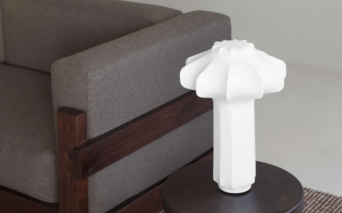 Phantom Table Lamp is a compact yet striking lighting piece. Made from semi-transparent spray resin, its layered construction creates a soft, warm glow. The lamp features a dimmable function for adjustable lighting, making it a versatile choice for various spaces. A statement table lamp that blends atmospheric lighting with an iconic, airy presence.
