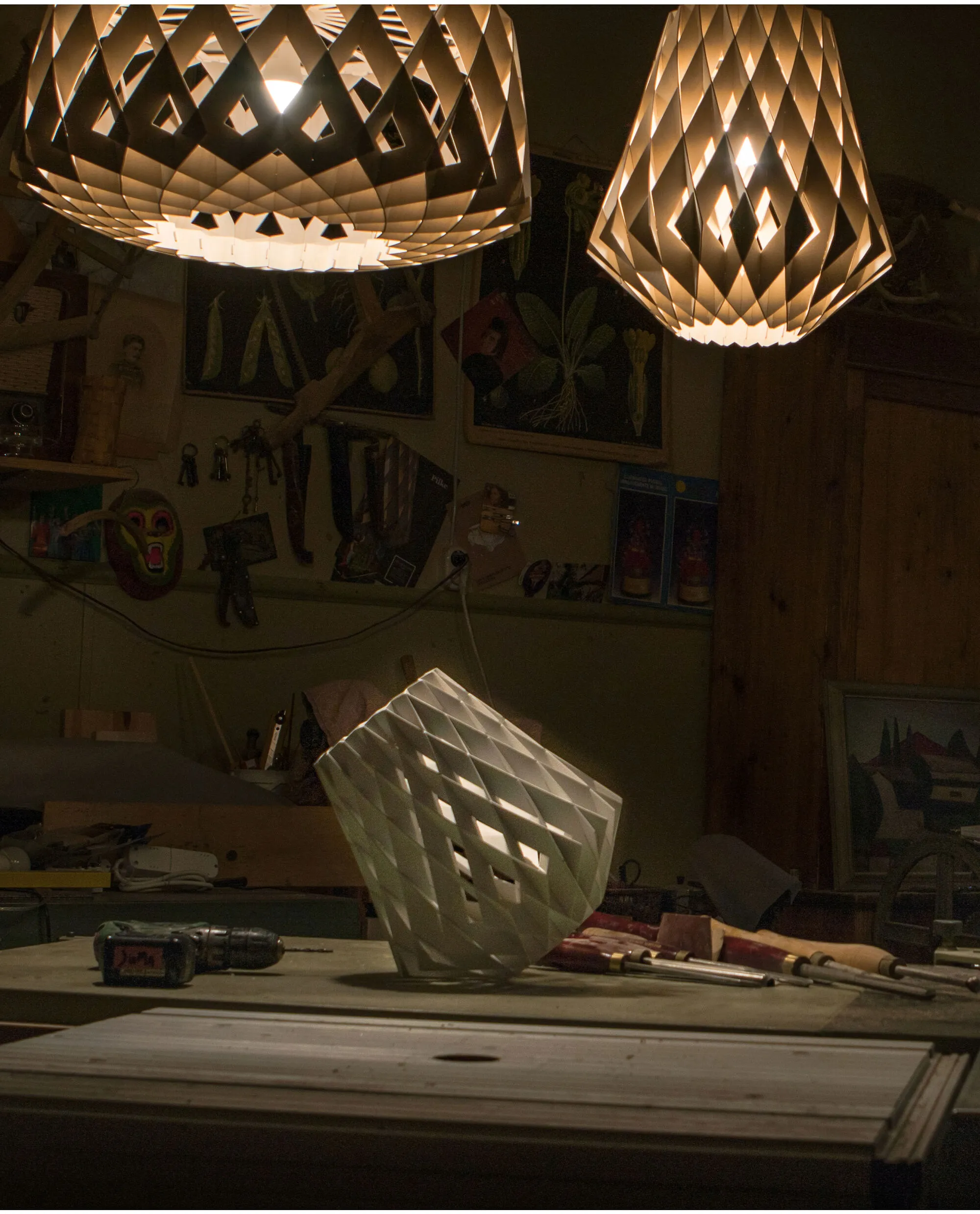 My design: I have been influenced by traditional crafts employing wood in its various forms. It inspired me to create new interpretations of the craft heritage utilizing today’s manufacturing techniques and materials. I want to investigate material qualities, beauty of structures. Pilke Signature Collection is a unique example of geometrically decorative wooden lights.