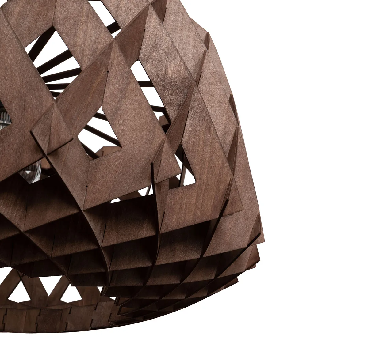 The birch plywood lamps are colored in a hue creating a beautiful walnut tone.
