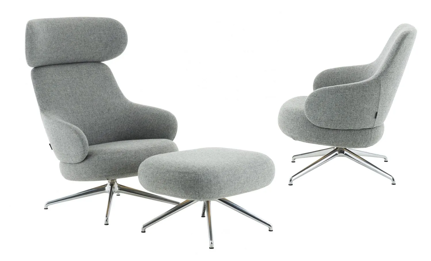 In his first collaboration with Swedese, international designer Khodi Feiz has created a comfortable easy chair with generous proportions and a timeless feel. As the name suggests, Pillo gives you a spontaneous sense of sinking down into a pile of soft cushions. Everything you need from an easy chair is stacked up in an ingenious design: a neckrest on a backrest on a comfortable seat on a reclining swivel base. The rounded form pays homage to the art of the upholsterer and the reference to Yngve Ekström’s classic Rondino easy chair is hard to miss. The Pillo easy chair is available in two back heights and with a footstool.