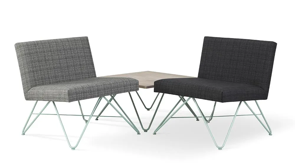 Pipe is the first in a group of metal framed slim and light pieces designed by Matz Borgström. It works beautifully on its own or linked up for a longer stretching seating solution.