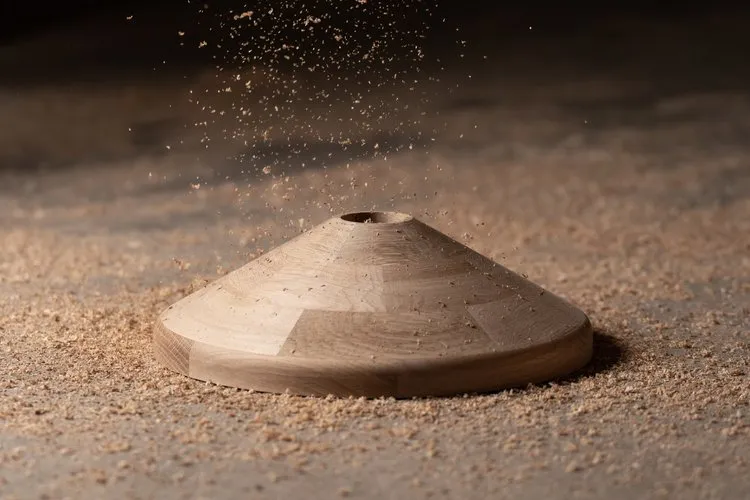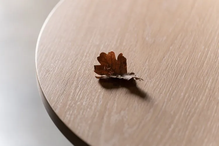 The aim has been to make full use of all the material in a plank of wood, so that nothing goes to waste. First the plank is sawn into numerous pieces. These are then shuffled and mixed before being reassembled layer upon layer and carefully milled to produce the final fluid lines of the base. This process accentuates the natural shades of the wood and enhances the grain, with the growth rings of the heartwood crating an almost floral effect to give each table its own unique patterning and identity.