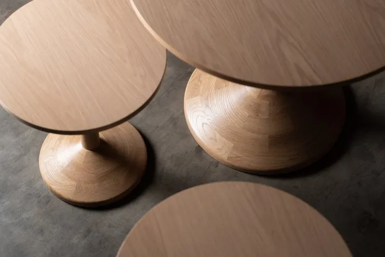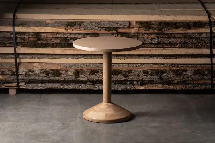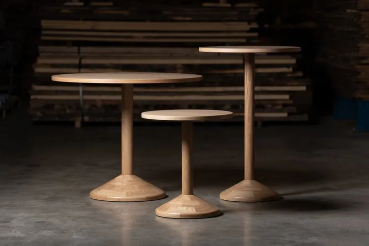 Pivå is a series of pedestal tables in solid wood, each creating a natural setting in which people can congregate and meet. The shape of the pedestal base is inspired by the way the majestic trunk of a leafy tree broadens to meet the ground where it stands and spreads its roots. The form of the base may appear simple and straightforward, but it is in fact a complex construction that is specially designed to provide long-lasting stability and durability.