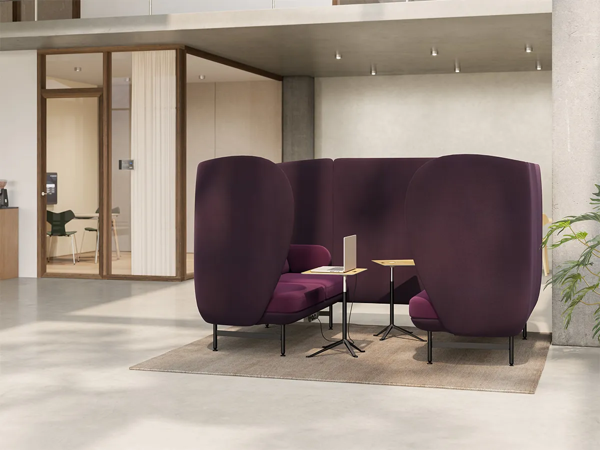 Part of the larger Fritz Hansen Plenum high-back sofa series designed for modern work life, the Plenum™ Cabin stands out with its unique features. Optional integrated screens up to 27” seamlessly blend into the design, with clever cable management ensuring a clean and attractive aesthetic. The optional table further enhances functionality, providing an extra layer for productive meetings.