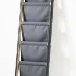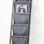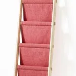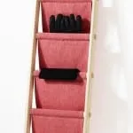a ladder with draped fabric. It can be used for storing everything
