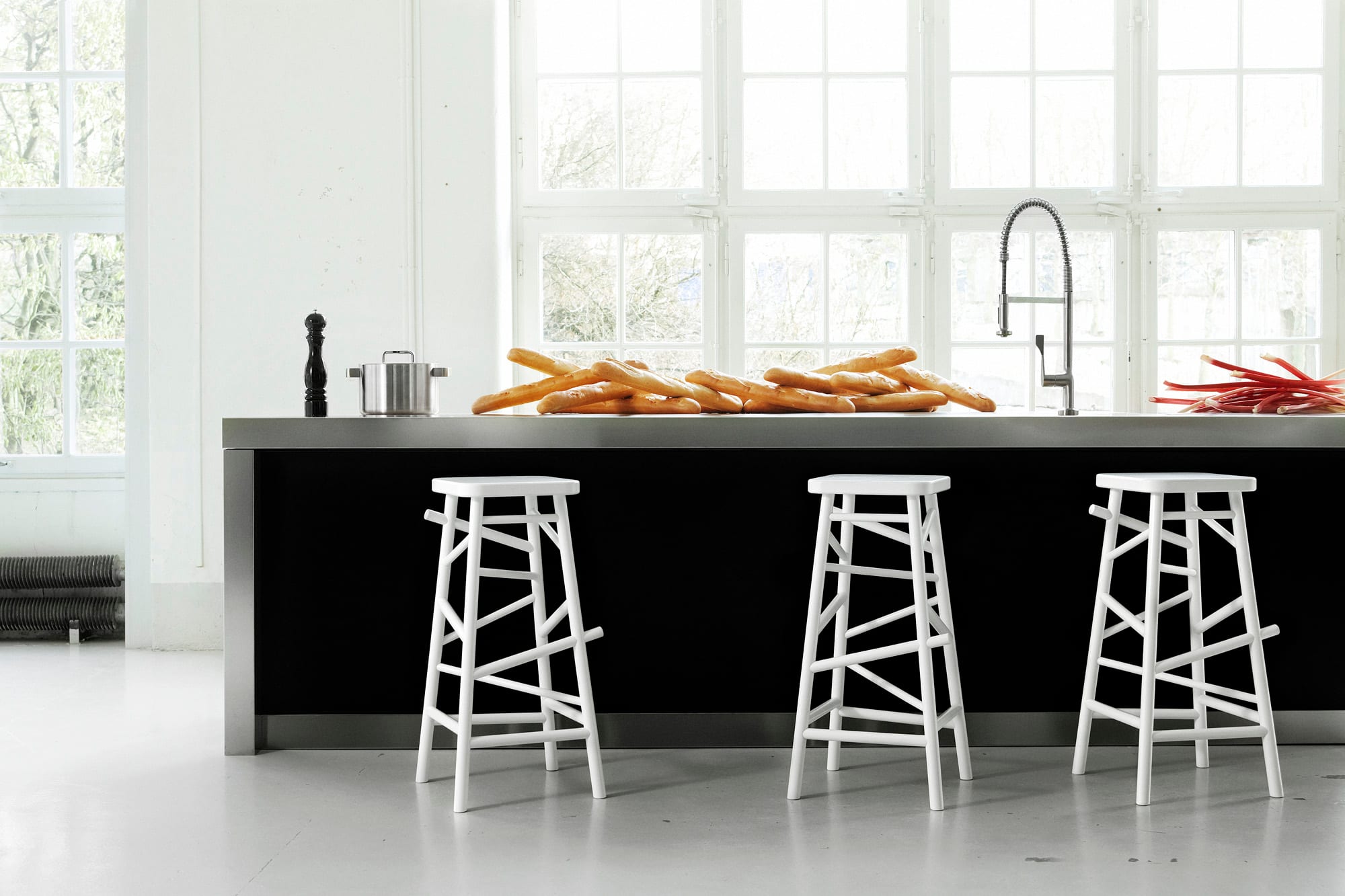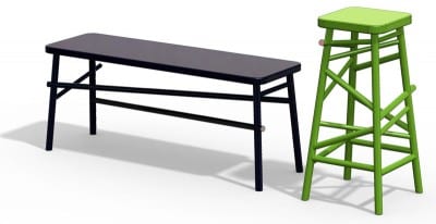 Gathering its inspiration from a hunting tower, the collection consists of jumble of sticks overlapping each other. In a playful manner, one is reminded of a game of pick-up-sticks, while the sticks also serve a clear purpose. Plockepinn consists of a bench and a high stool that is exceptionally well suited to such environments as cafés and restaurants, where the stool serves as an obvious complement to the bar. The sticks can serve as ladders, hangers for bags or simply as a welcome footrest for tired feet.