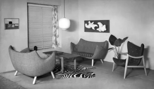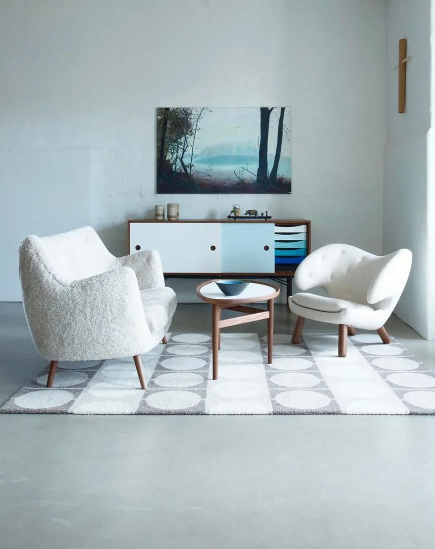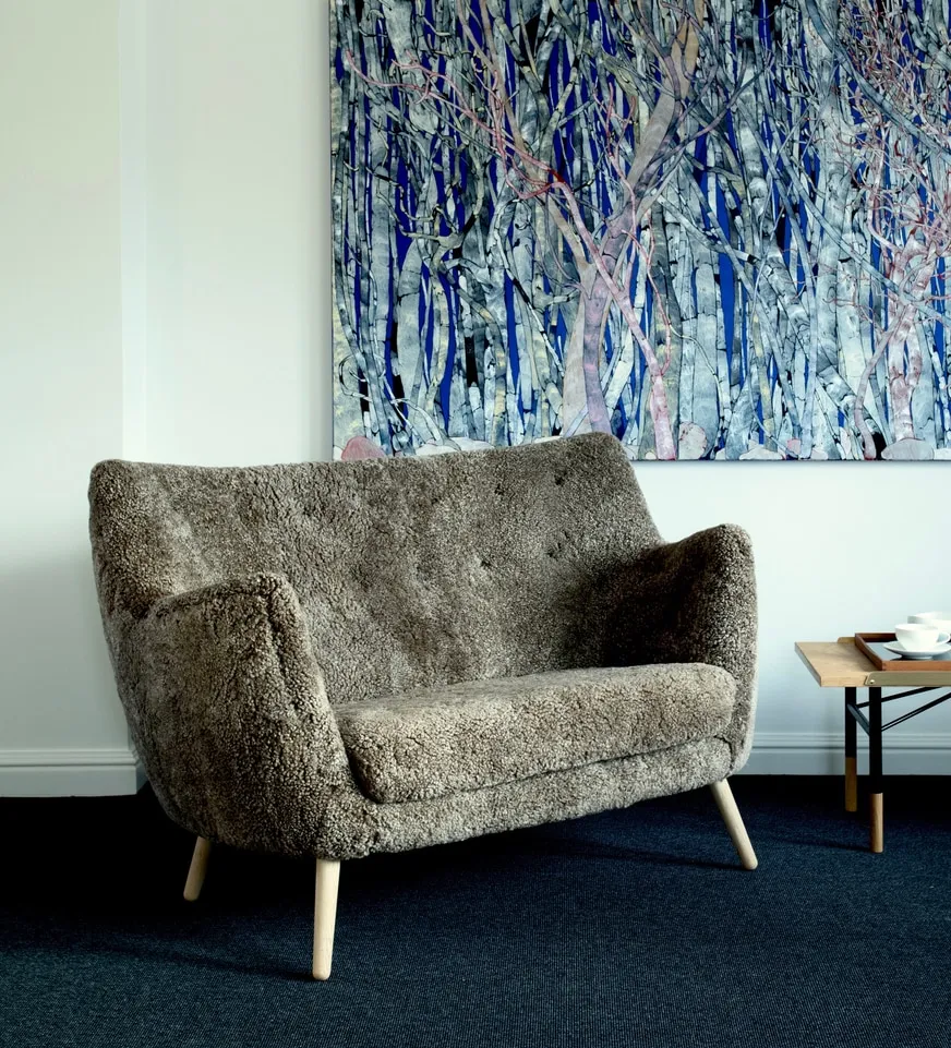 This small two-seater sofa first saw the light of day at the Copenhagen Cabinetmakers’ Guild Exhibition in 1941. It should be seen as a natural progression from the Pelican Chair that was displayed the previous year. The upholstery is very slim compared to the norm at the time and it was the result of Finn Juhl’s ambition to create functional furniture for smaller apartments.