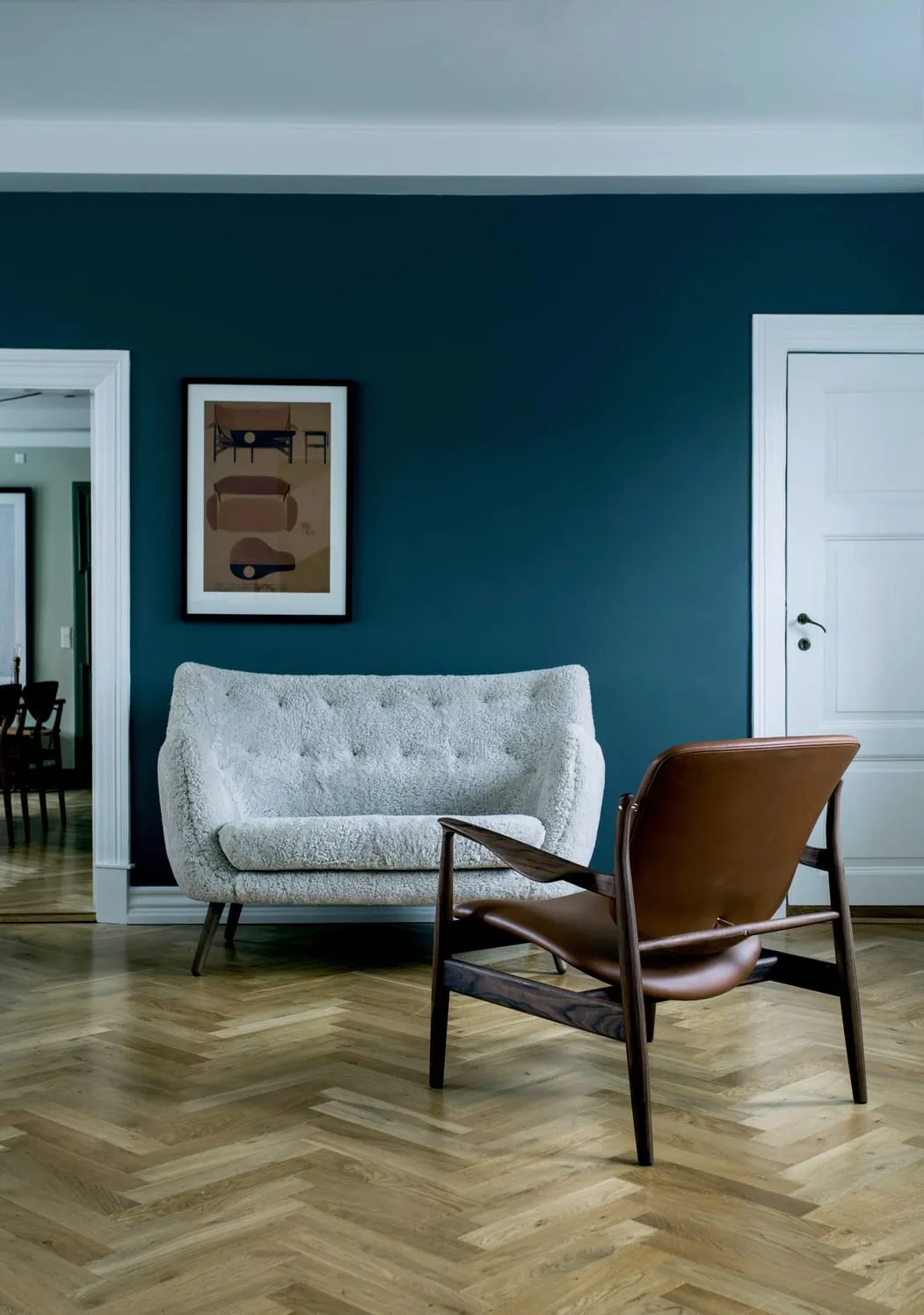 The small sofa received its name much later, in 1959, when a popular Danish cartoonist depicted the exact sofa as the place where a young poet would withdraw to contemplate the complexities of life.