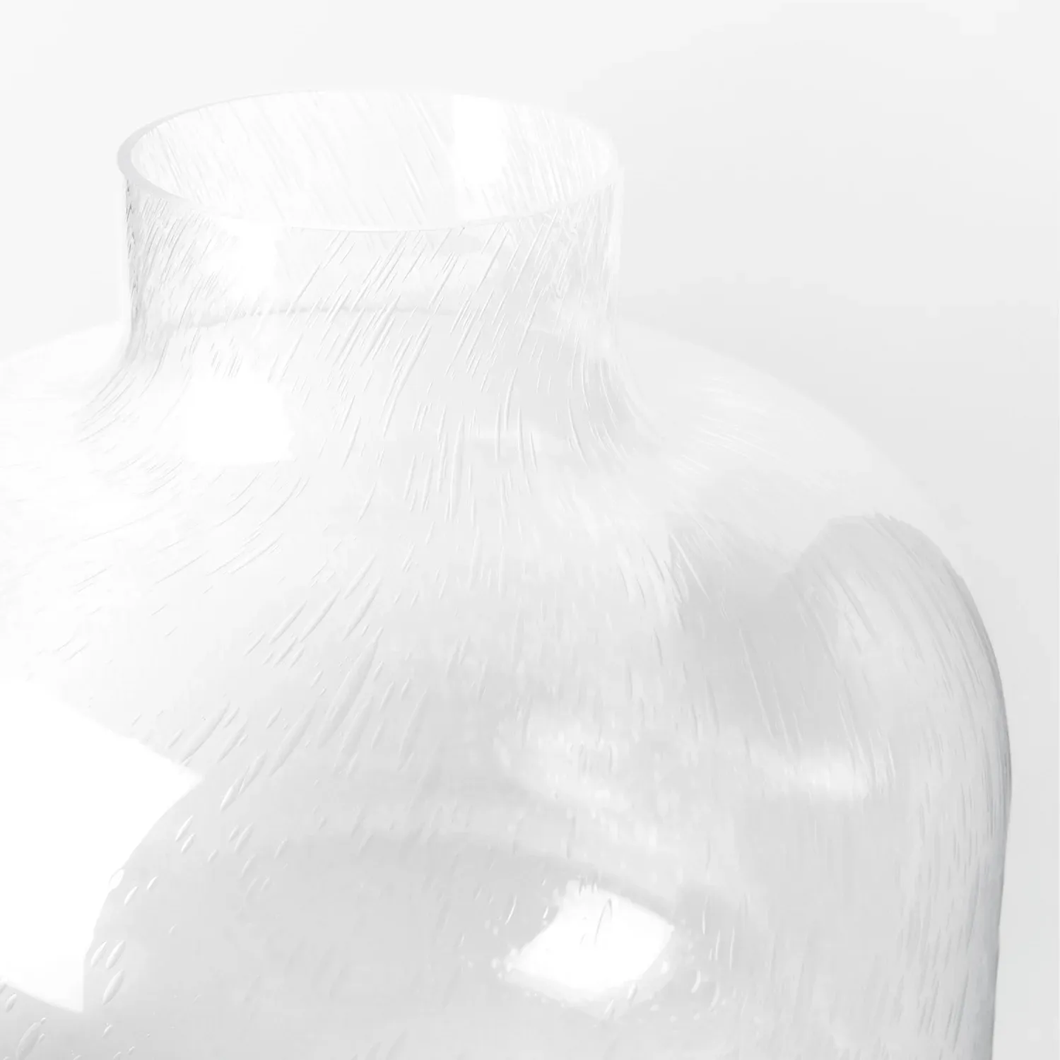 The characteristic bubbles in the glass are part of the vase’s unique aesthetic. Pomona is mouth-blown at Skruf’s glassworks, and each vase is unique. The large model requires at least three glass blowers to make it, and they can only blow a few pieces a day.