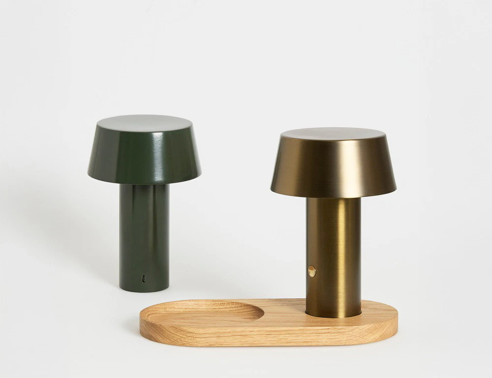 The new portable table lamp is designed to celebrate the anniversary, add focus to the essence and importance of good light, and will after the first 50 limited edition pieces be available in two standard colors; dark green and brushed brass. Solid wood oak base from off cuts by Dinesen (to be launched later).