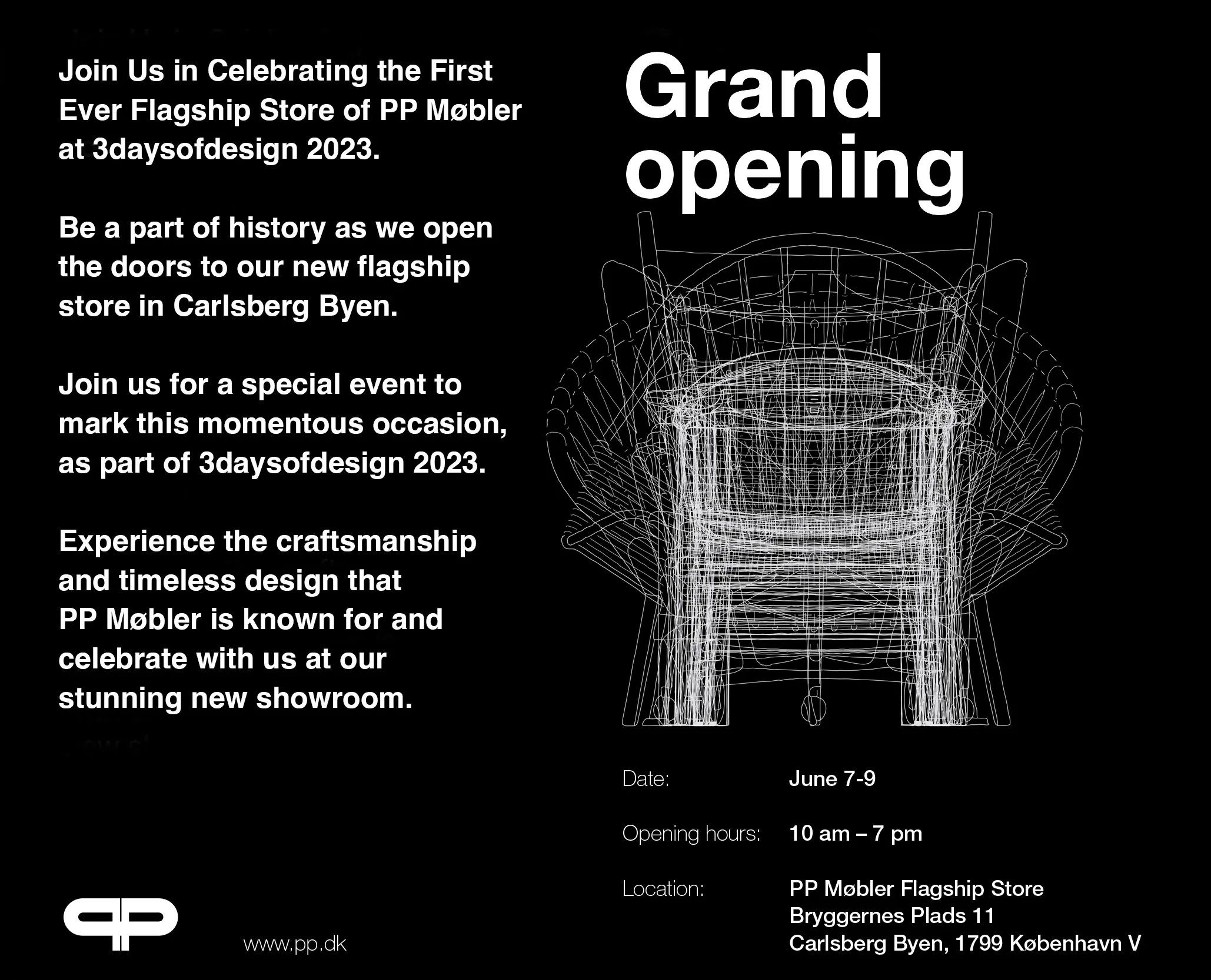 PP Møbler opened its first-ever flagship store during 3daysofdesign 2023, marking a historic moment for the legendary Danish furniture manufacturer. The permanent Copenhagen showroom provides dedicated space to experience the company’s exceptional craftsmanship and iconic chair designs by Hans J. Wegner and other masters.