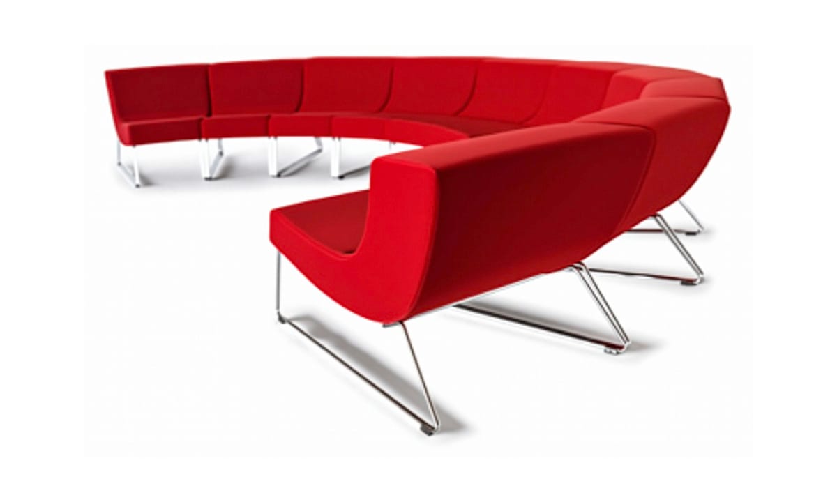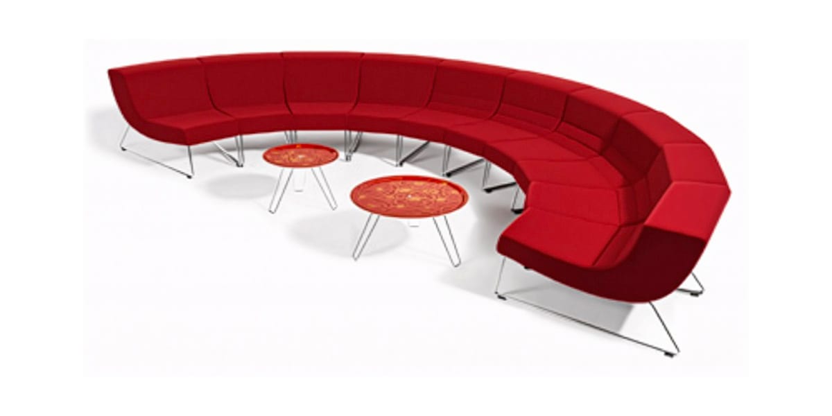 The Fatback easy chair and sofa system has a new add on section, a whole circle of these sections consists of 20 pieces, so to make a 90 degree corner you need 5pieces. The add on section is possible to link together with the straight section. When Fatback is used as easy chairs we recommend to use the straight section and the round section only as an add on section. A big circle will have an outer diameter of 4,5 metres and an inner diameter of 2,5 meter.