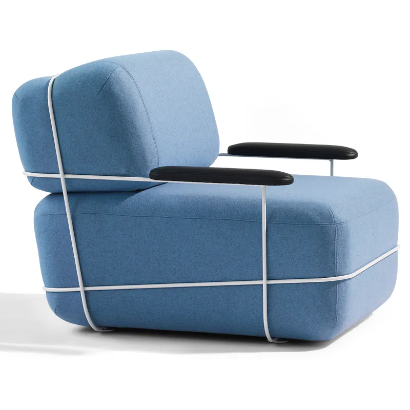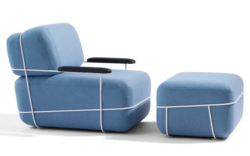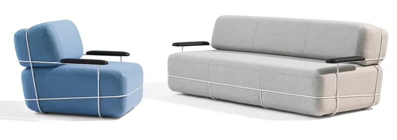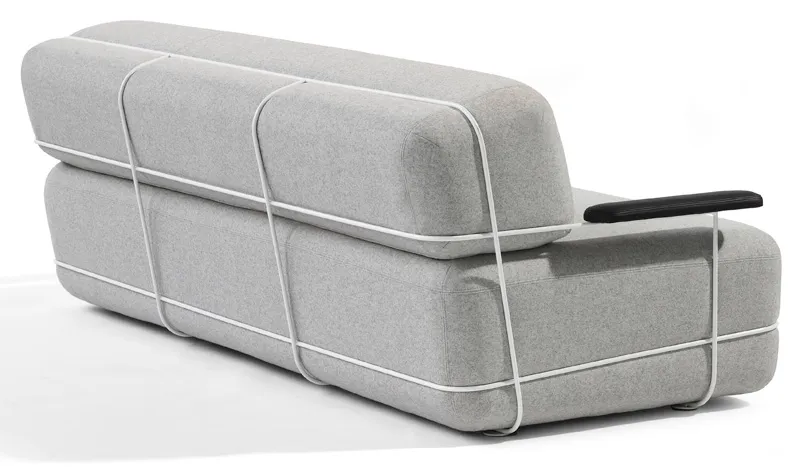 In their studio they noticed a small, beautifully rounded pebble. It was dark grey, very smooth and had a neat white line running across it. The line as a graphic element, together with the pebble’s pleasant form and texture, became the base for the design in PEBBLE. They also added a functional ornament, the wire frame enclosing the sofa and holding the loose cushions in place, to create an interesting line pattern – often found on stones. Pebble was shown as a prototype for the first time at Salone Satelite on Salone del Mobile Fair in Milano in 2005.