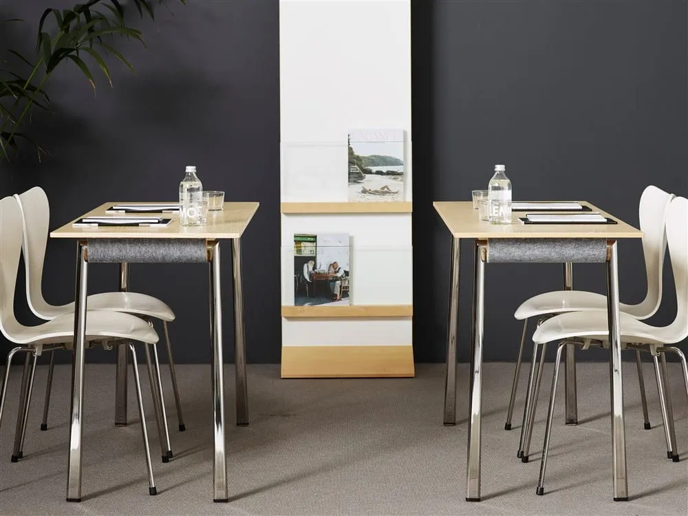 Now our sales success Press is introduced with steel legs. Chromed, black or gray steel legs that run from a round shape at the table top to be oval by the floor. The folding table Press that came in 2015 was the result of the mission of creating a folding table entirely in wood. The challenges were that the table should be easy to carry, stable, durable and easy to fold upside down. After years of development, the designers came to an innovative locking mechanism that gave the table exceptional stability and easy to fold. Additionally, you can sit at the short side of the table, as the locking of the legs does not require disturbing crossroads. After listening to our customers we now present the folding table Press with steel legs.