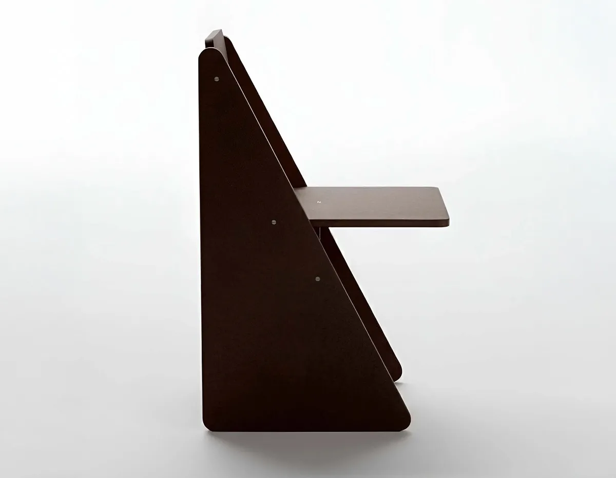 The Angle Chair functions as both a sculptural object and practical seating. Its geometric silhouette creates visual presence while maintaining functionality for everyday use in residential and commercial spaces.