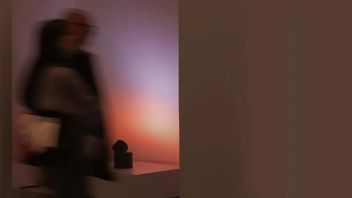“The spotlight has an anthropomorphic character, resembling an eye that attentively observes the room. This creates a subtle interaction with the surroundings, giving it an almost living presence.”