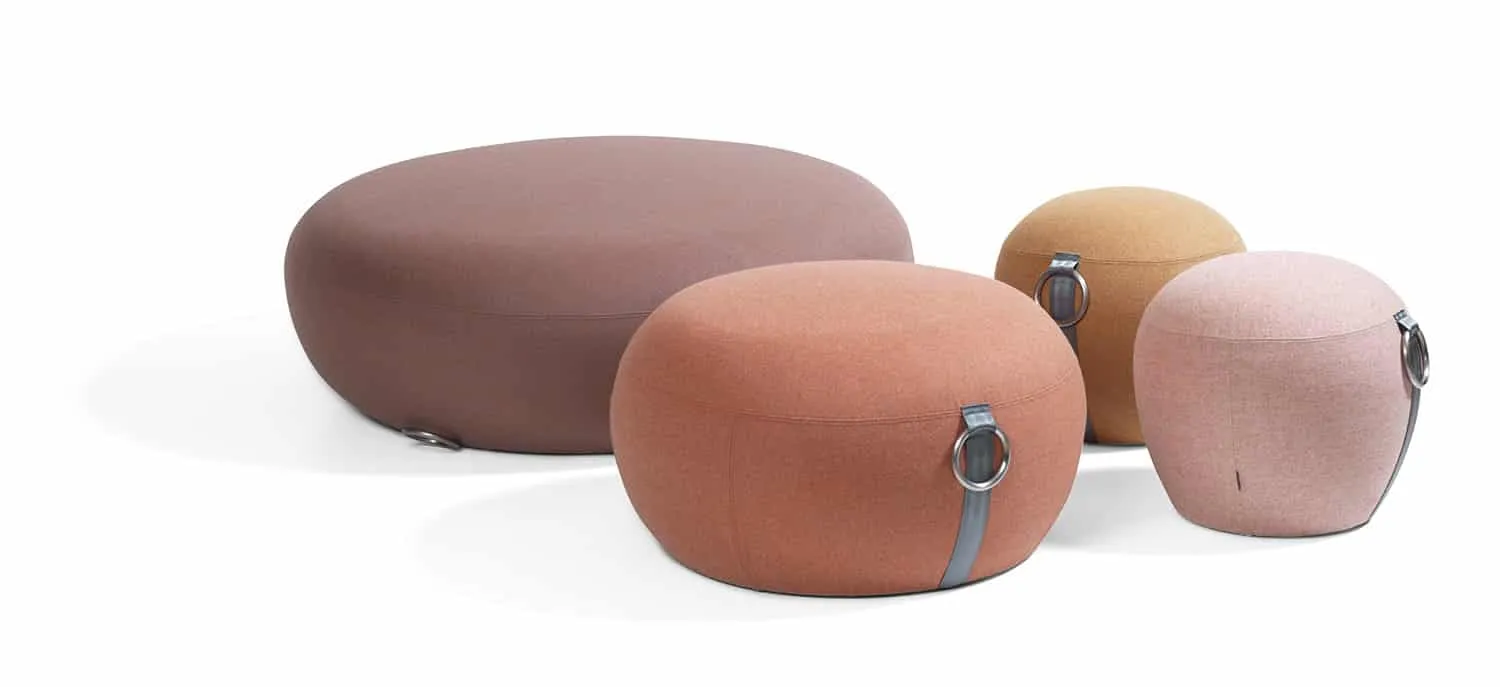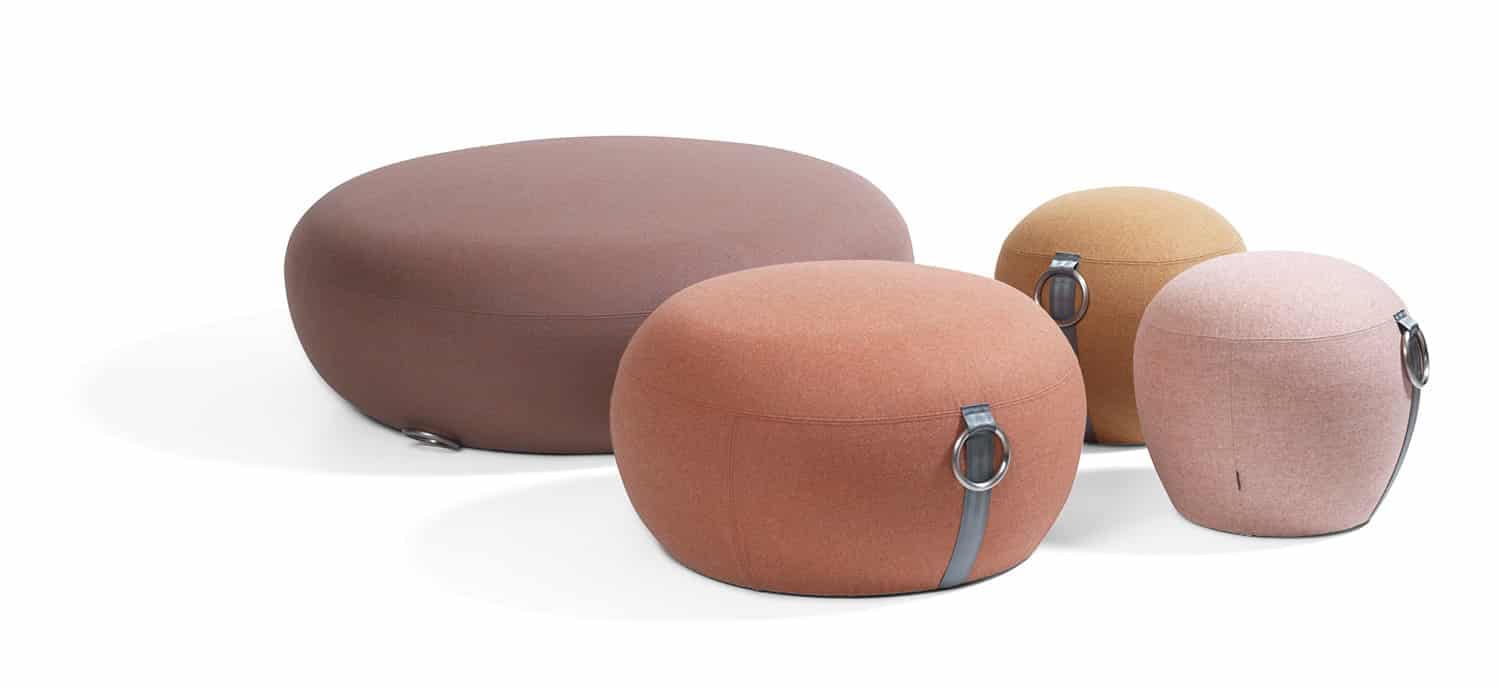 Pouffes and footstools are often moved to where they’re needed at that particular time. We emphasise this movability with a functional piercing; a ring that can be used as a practical handle. Pucca comes in three sizes; Pucca 1; the smallest, Pucca 2; the middle size and Pucca 3; the biggest.